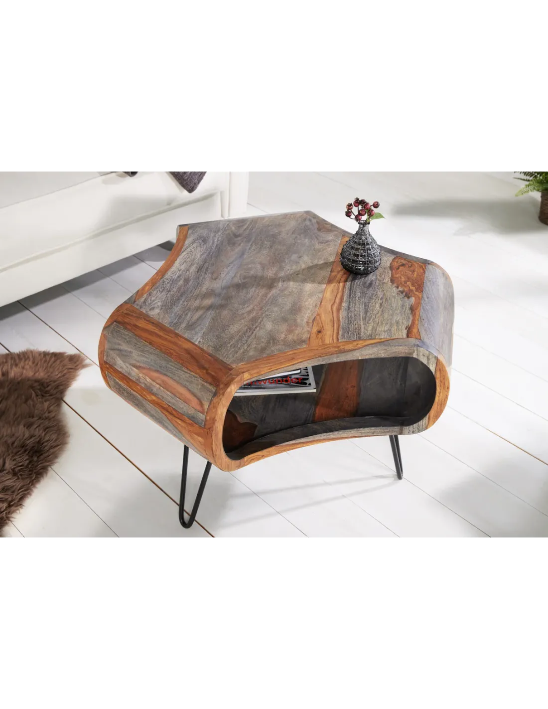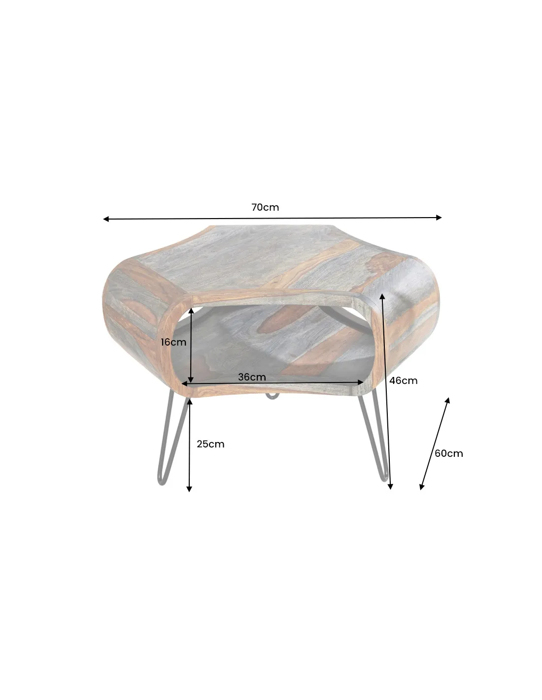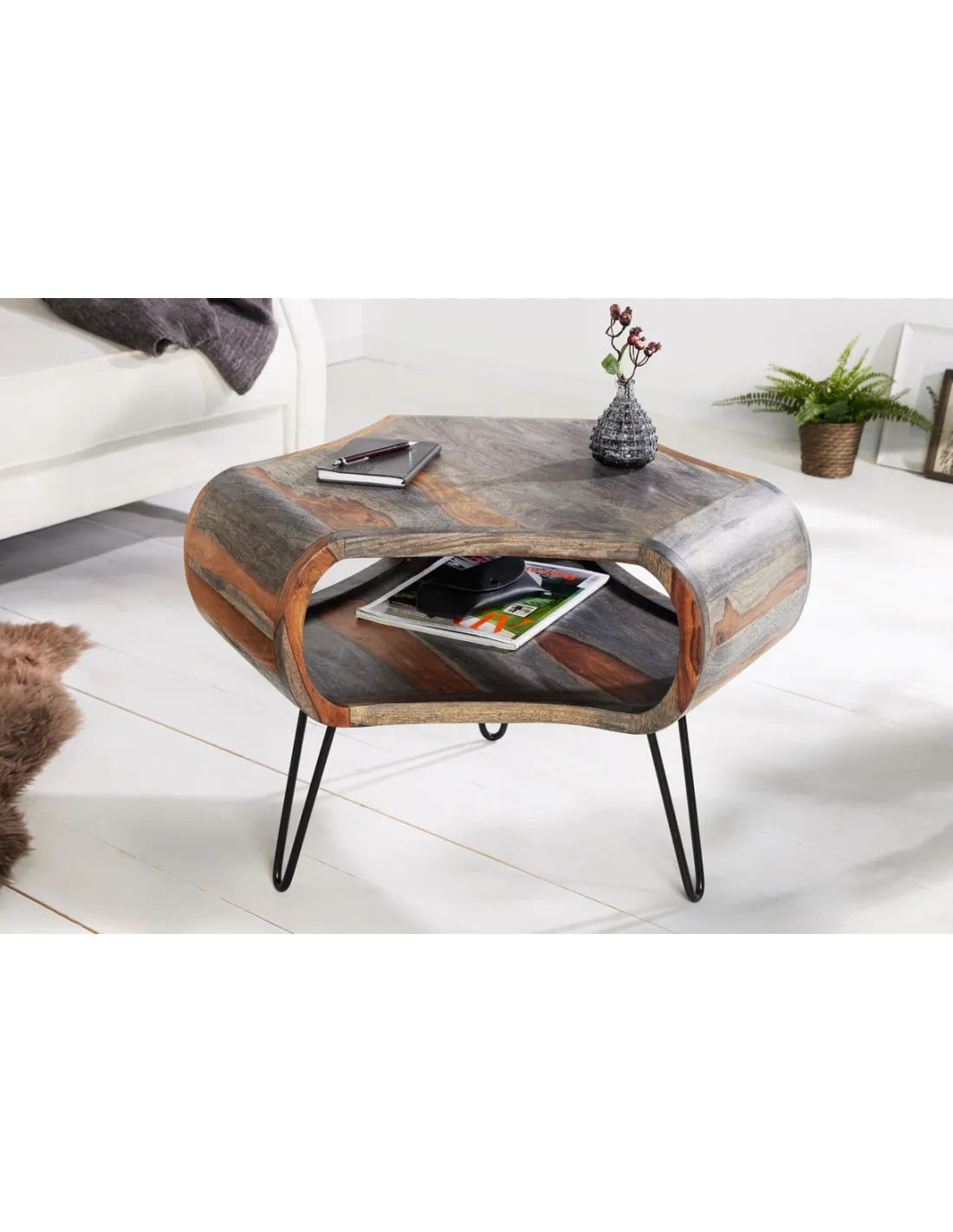 Table basse ORGANIC LIVING 70 cm en bois de sheesham gris