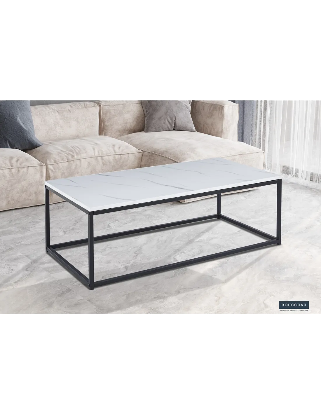 TABLE BASSE 'DALLAS' 120cm DÉCOR MARBRE BLANC