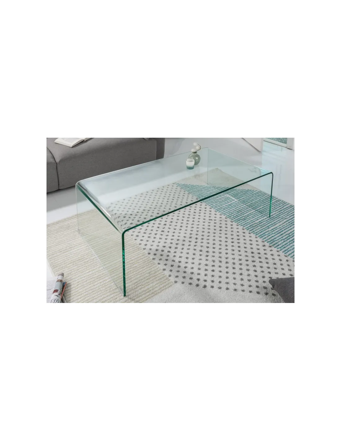 Ajoutez une touche d'élégance à votre intérieur avec cette table basse en verre de sécurité transparent verdâtre.