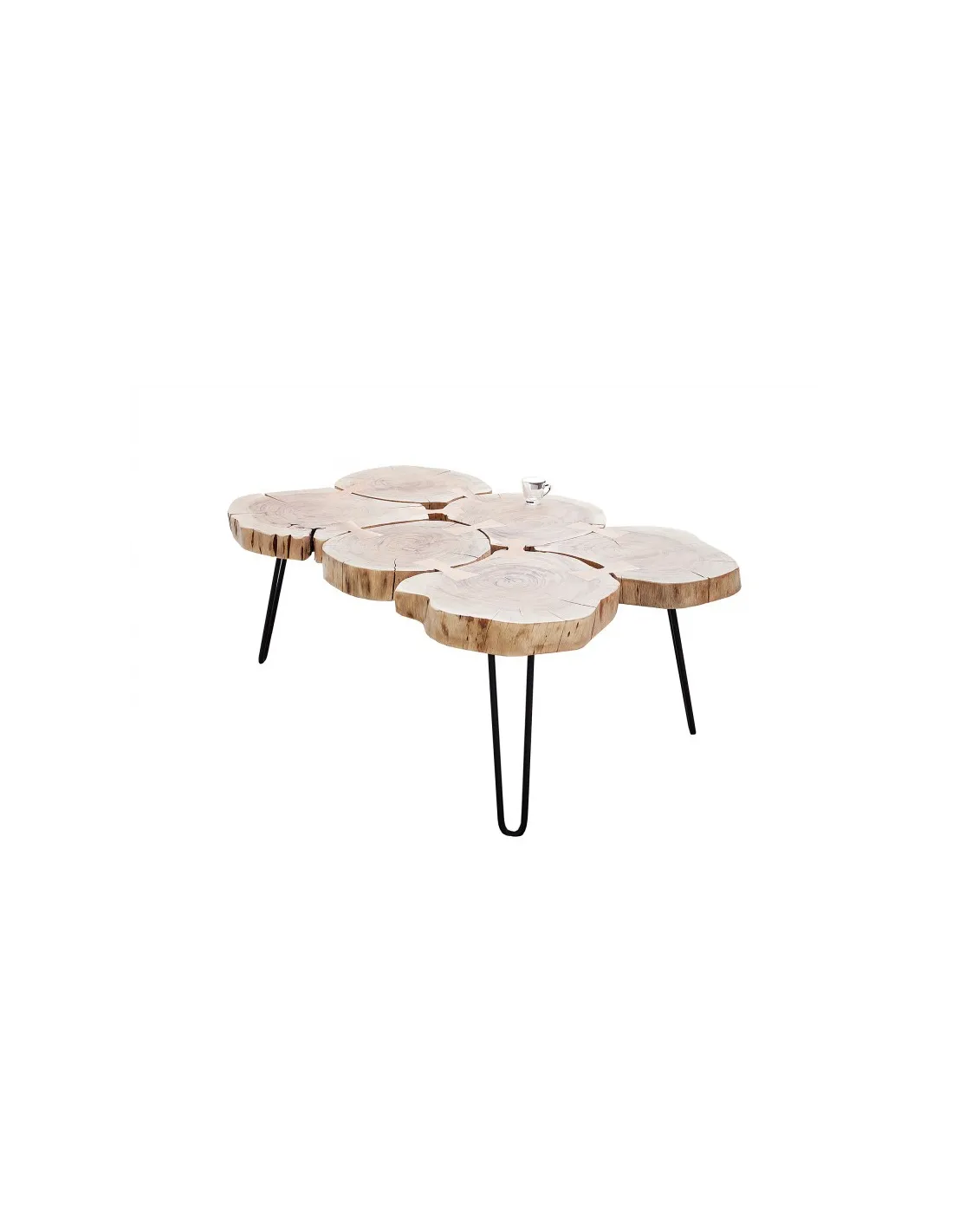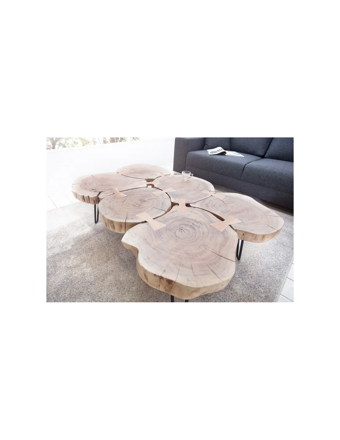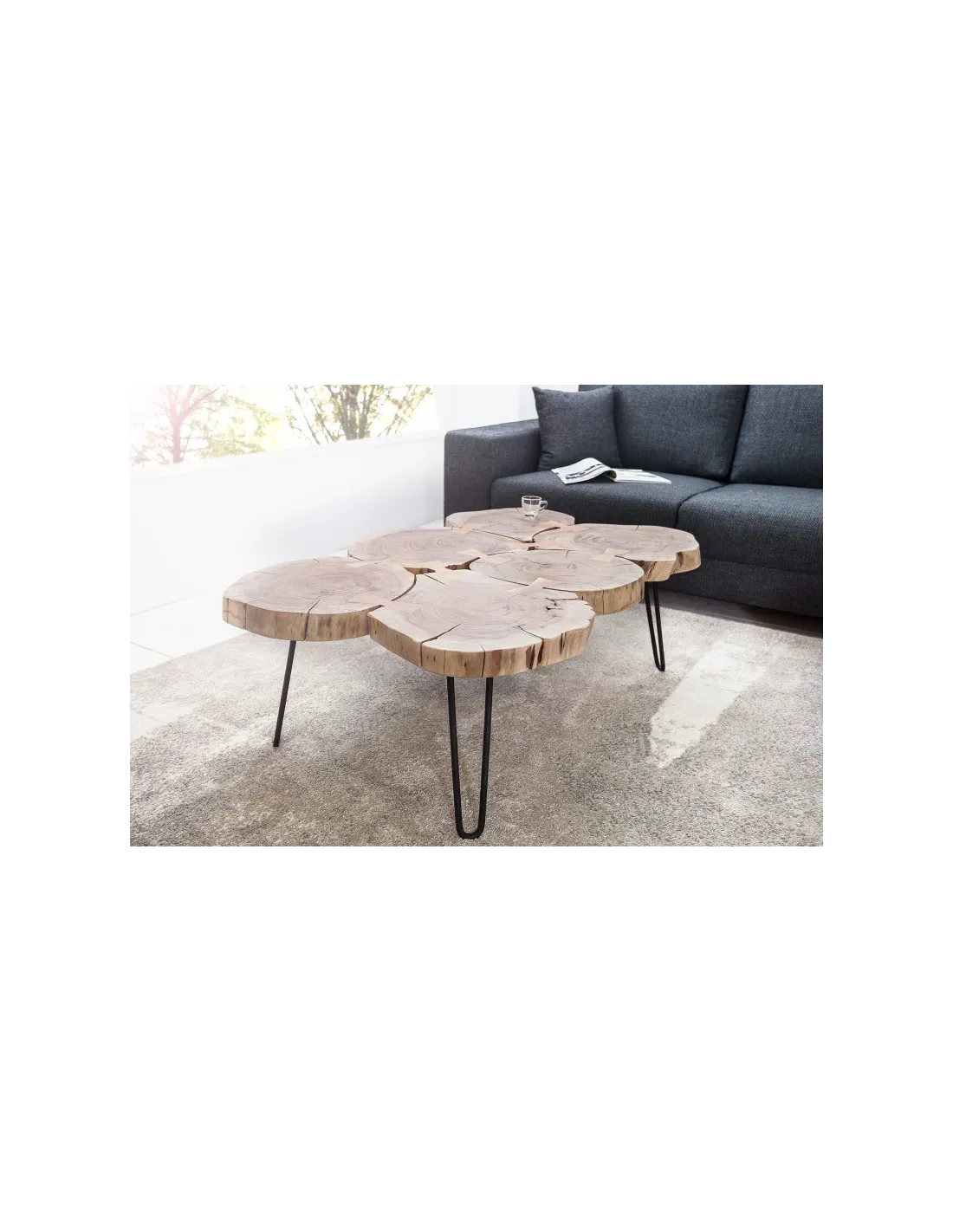 Vous cherchez une table de salon à la fois moderne, naturelle, pratique et exceptionnelle ? Cette table basse design rustique sera le meilleur choix, réalisée merveilleusement bien à la main en bois d'acacia, elle est composée de 6 morceaux du bois ronds assemblés, avec une finition parfaite et unique, Posée sur des pieds métalliques, pour une ambiance très originale et élégante en même temps !