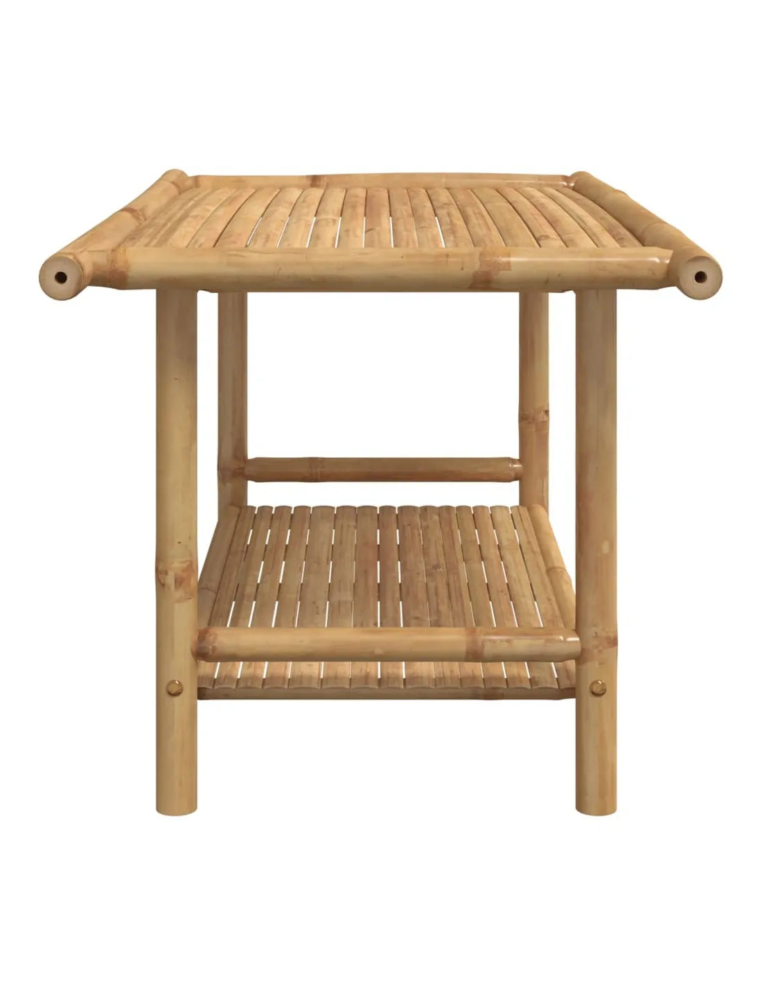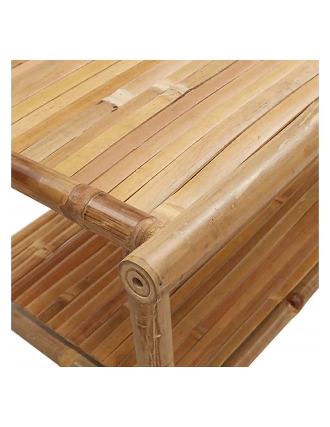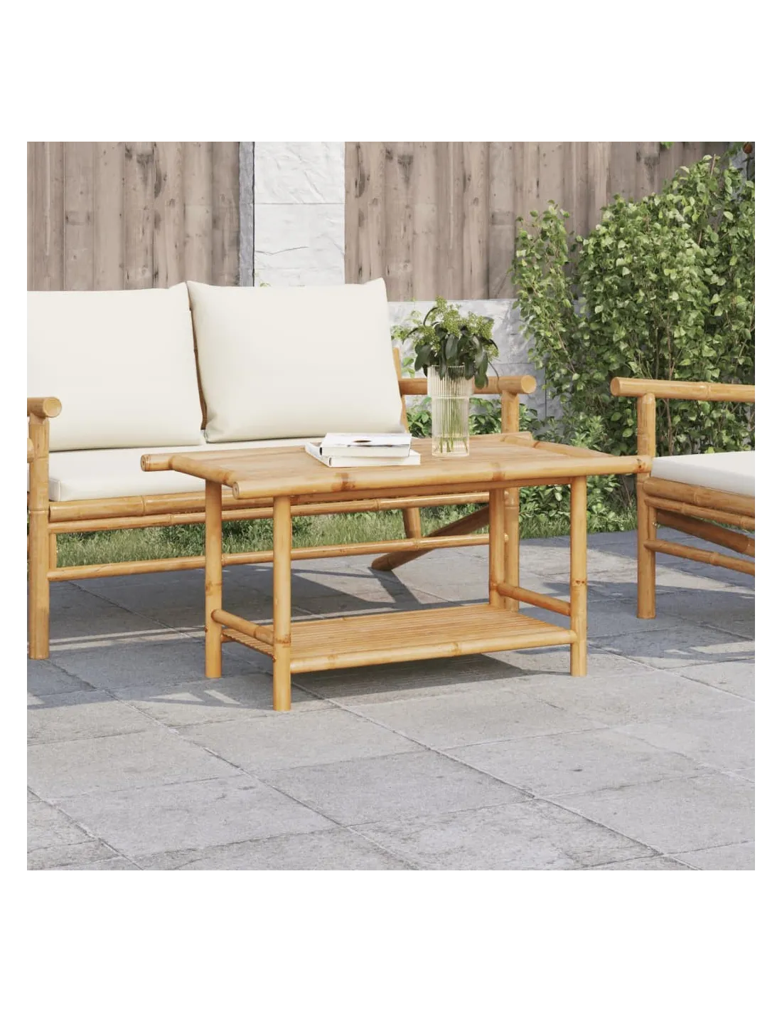 Alliant fonctionnalité et beauté, cette table basse sera le point central de votre pièce. Matériau durable : la table basse est fabriquée en bambou. Le bambou est connu pour sa flexibilité et sa dureté. Les meubles en bambou sont une bonne option si l'on veut des meubles d'extérieur robustes fabriqués à partir de matériaux naturels.Grand espace de rangement : ce buffet offre un espace de rangement pratique pour garder vos magazines, livres, télécommandes et autres petits objets bien organisés et à portée de main.Ventilé : cette table avec une conception à lattes permet à l'eau de s'écouler, ce qui le rend imputrescible et lui confère une longue durée de vie.Dessus de table robuste : le dessus de table robuste de cette table d'appoint offre une surface sécuritaire sur laquelle vous pouvez placer des boissons, des vases, des bols de fruits ou des ornements.Large éventail d'utilisations : cette table basse moderne convient à divers espaces intérieurs et extérieurs, notamment les salons, les chambres à coucher, les couloirs, les bureaux, les balcons, les terrasses et les porches. Bon à savoir :Pour que vos meubles d'extérieur restent beaux, nous vous recommandons de les protéger avec une housse imperméable.