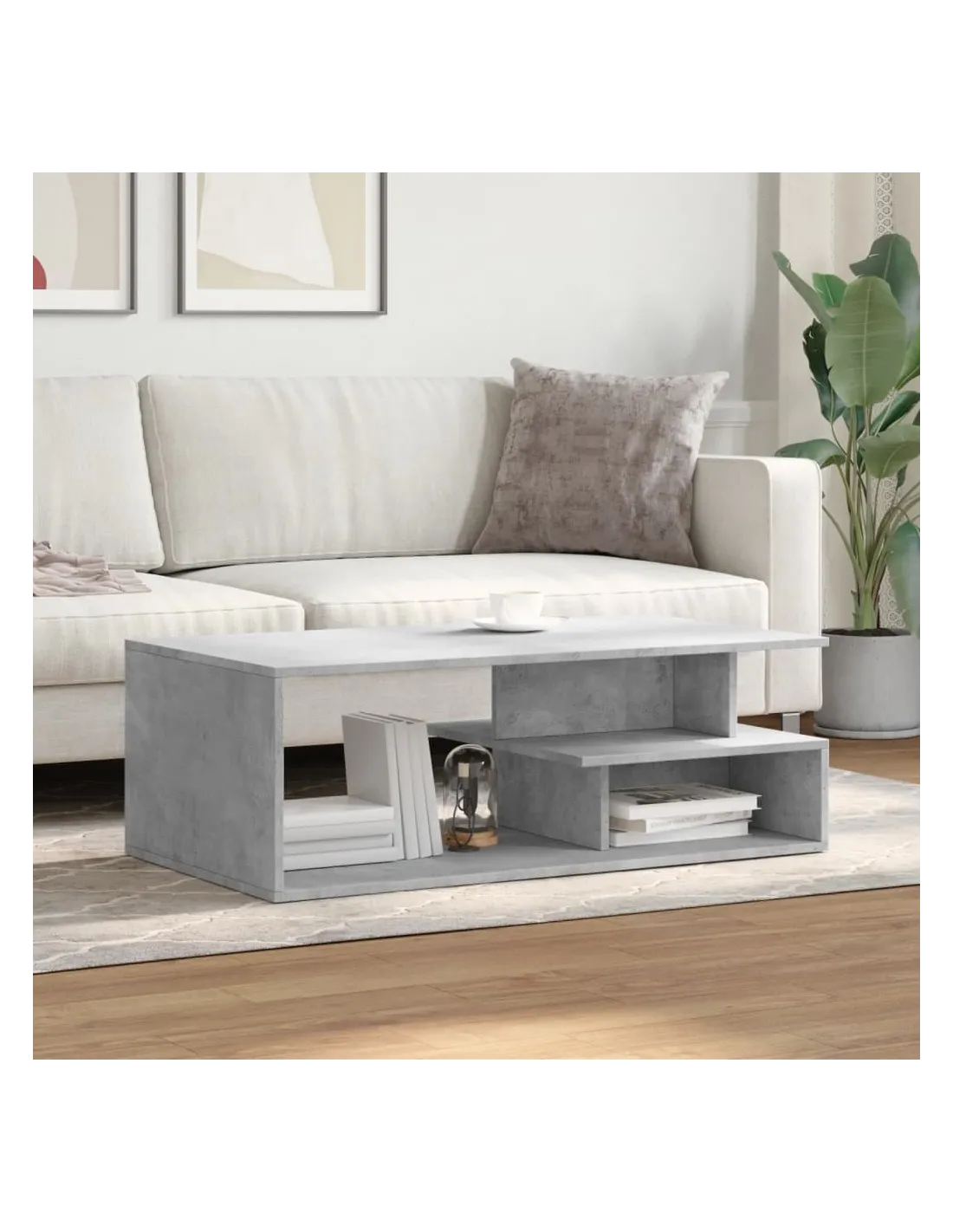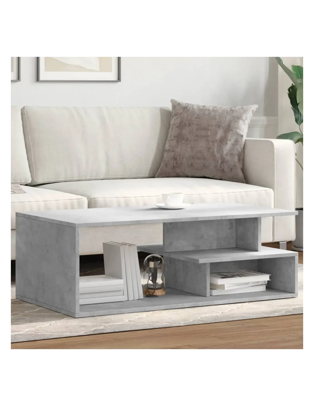 Table basse gris béton 102x55x35 cm bois d'ingénierie