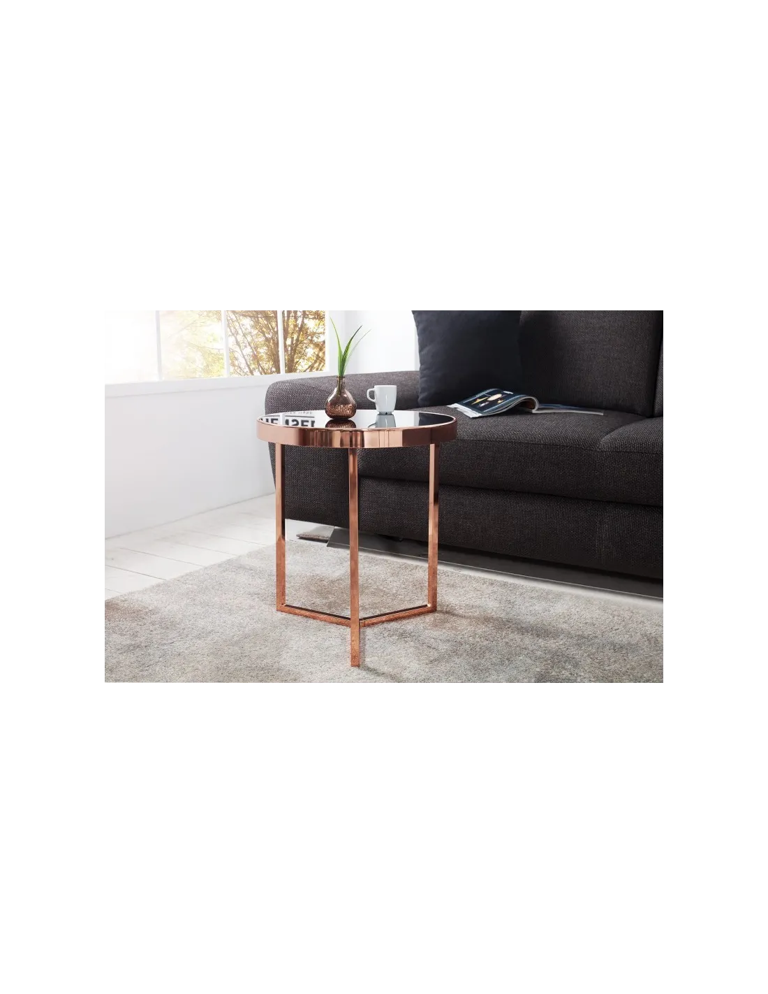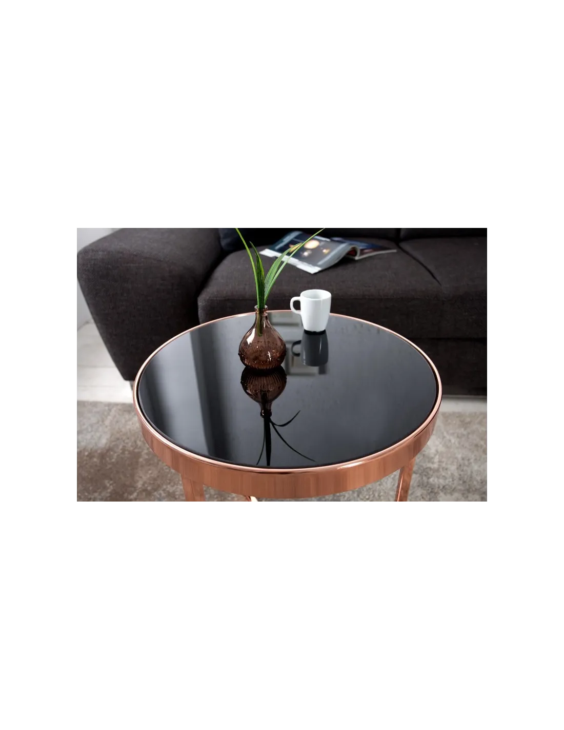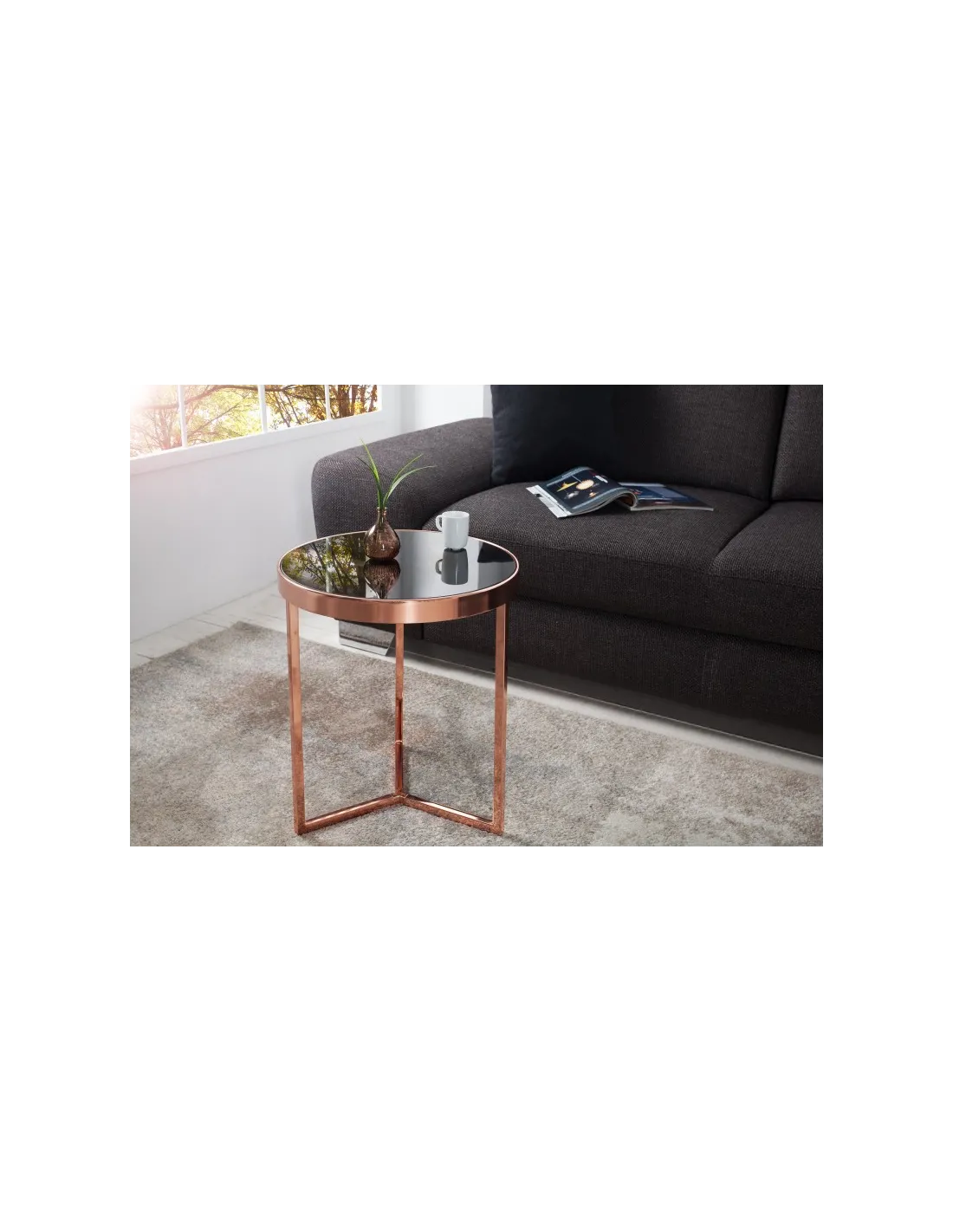 Table d'appoint design en verre noir / métal cuivré