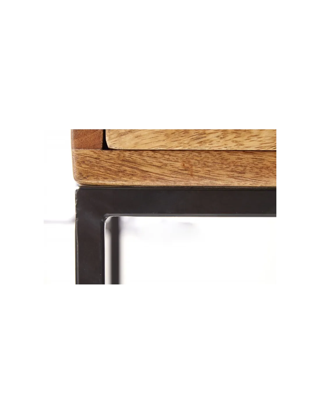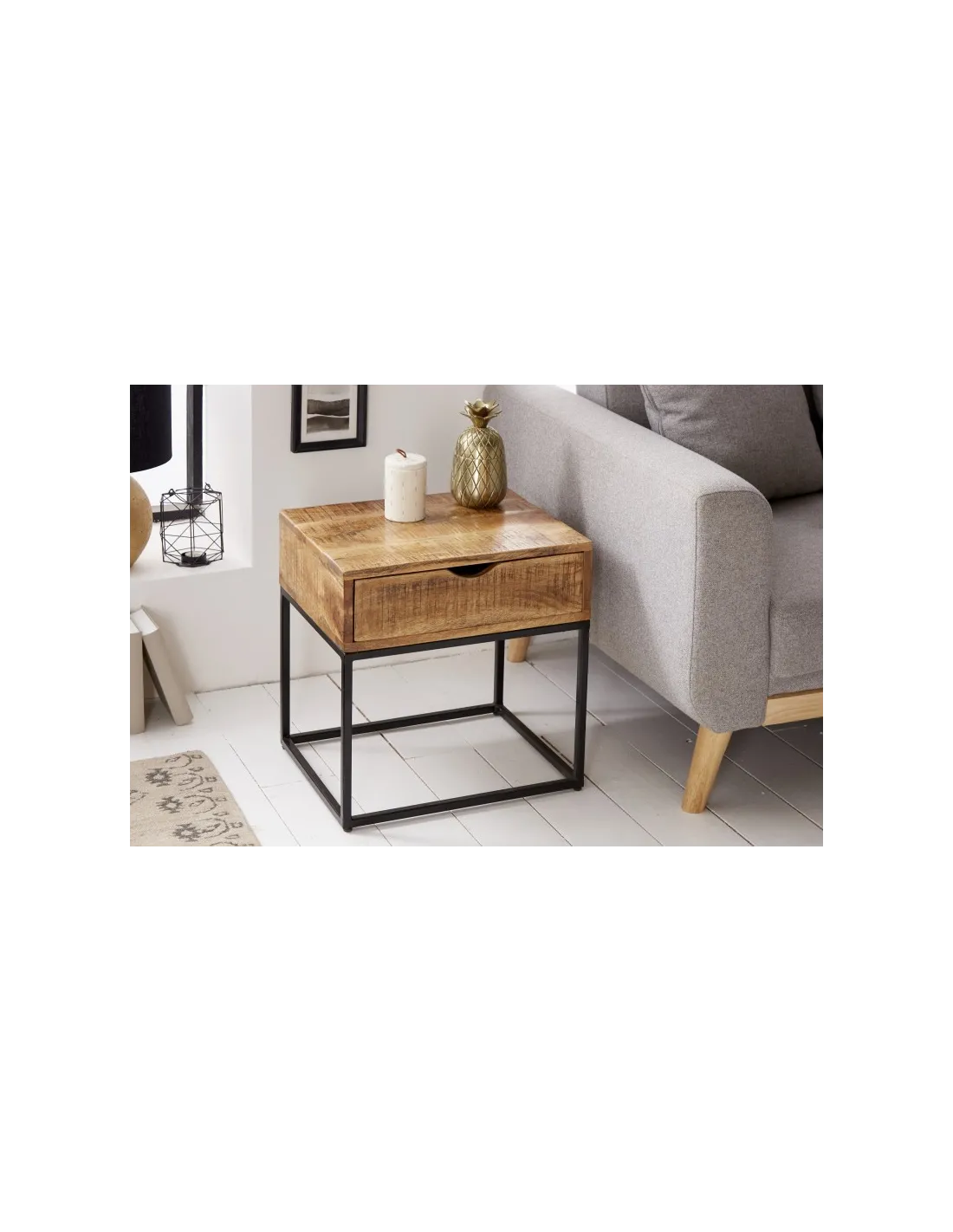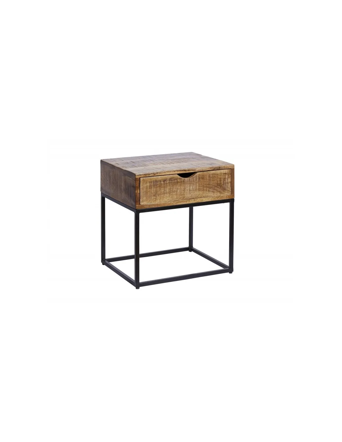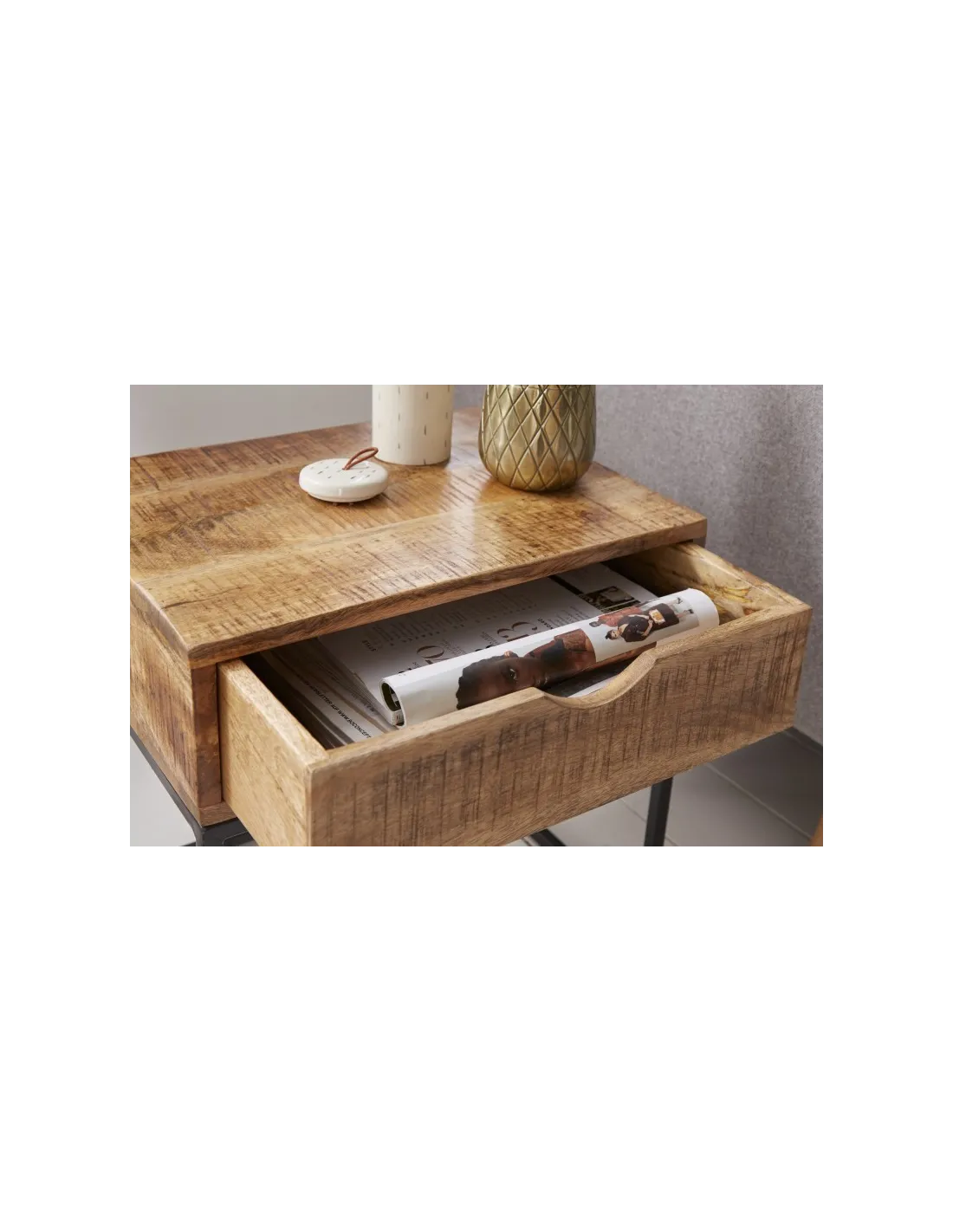 Table de chevet de couleur naturelle et de style industriel moderne ajoute à votre chambre une ambiance aimable, idéal pour installer une lampe de table ou une tasse de café. Fabriquée de meubles placage avec du bois de mangue naturel. La couleur naturelle et le style industriel moderne ajoute a votre chambre une ambiance aimable, idéal pour installer une lampe de table ou une tasse de café. À son tour, un tiroir pratique pour ranger de petites bagatelles, vous permettant de contrôler le désordre.