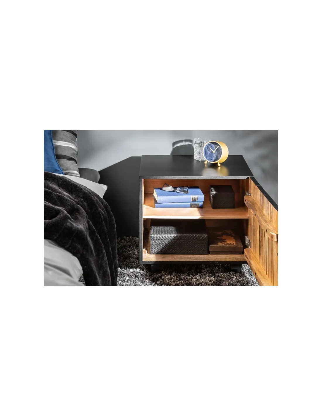 Matériau : bois de mangue massif laqué noir