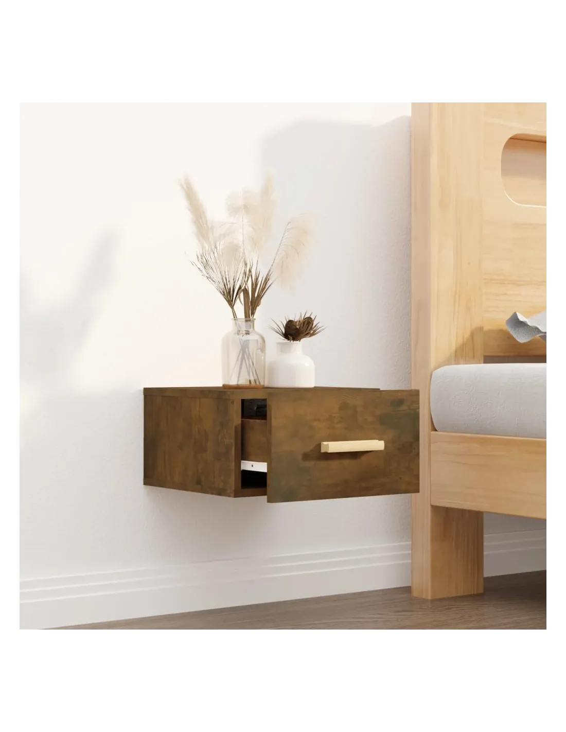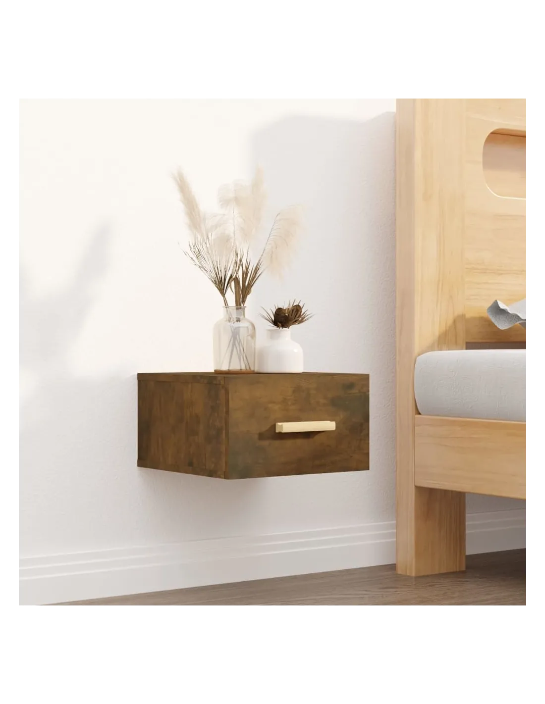 Table de chevet murale chêne fumé 35x35x20 cm