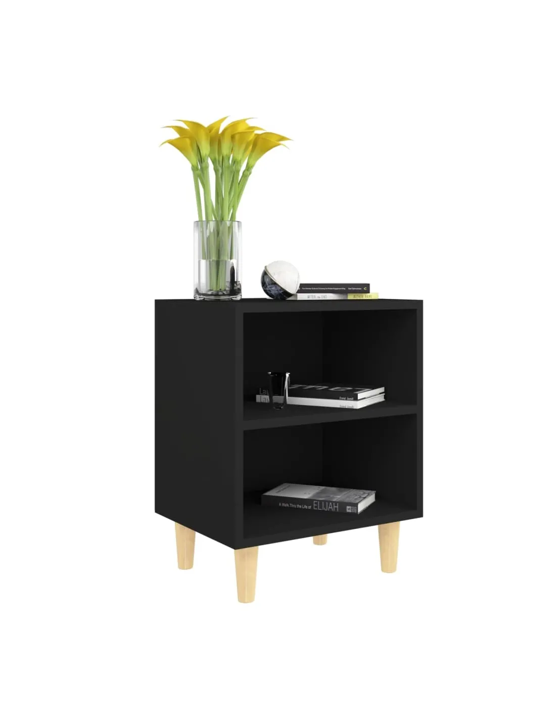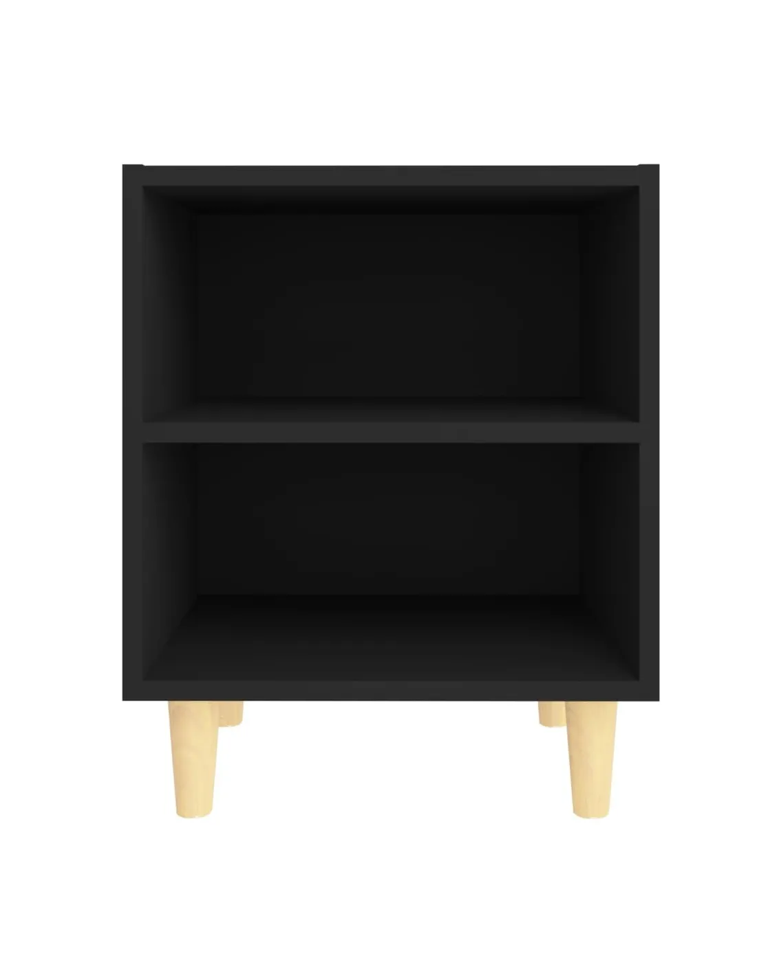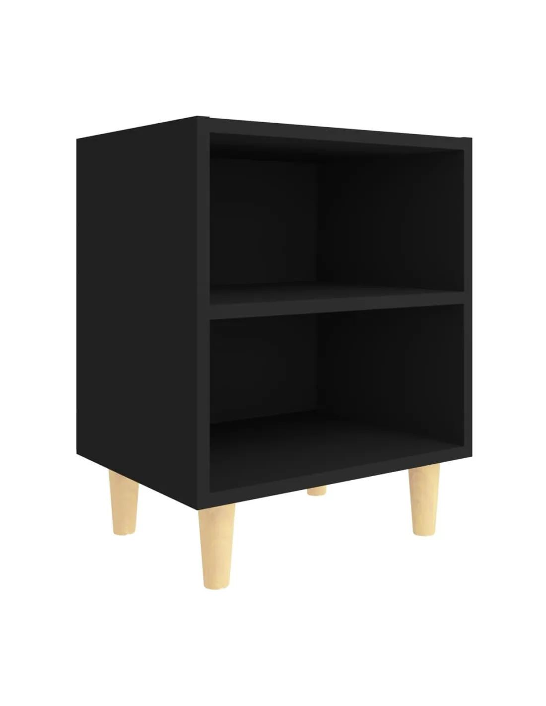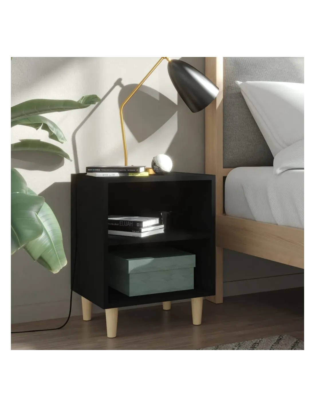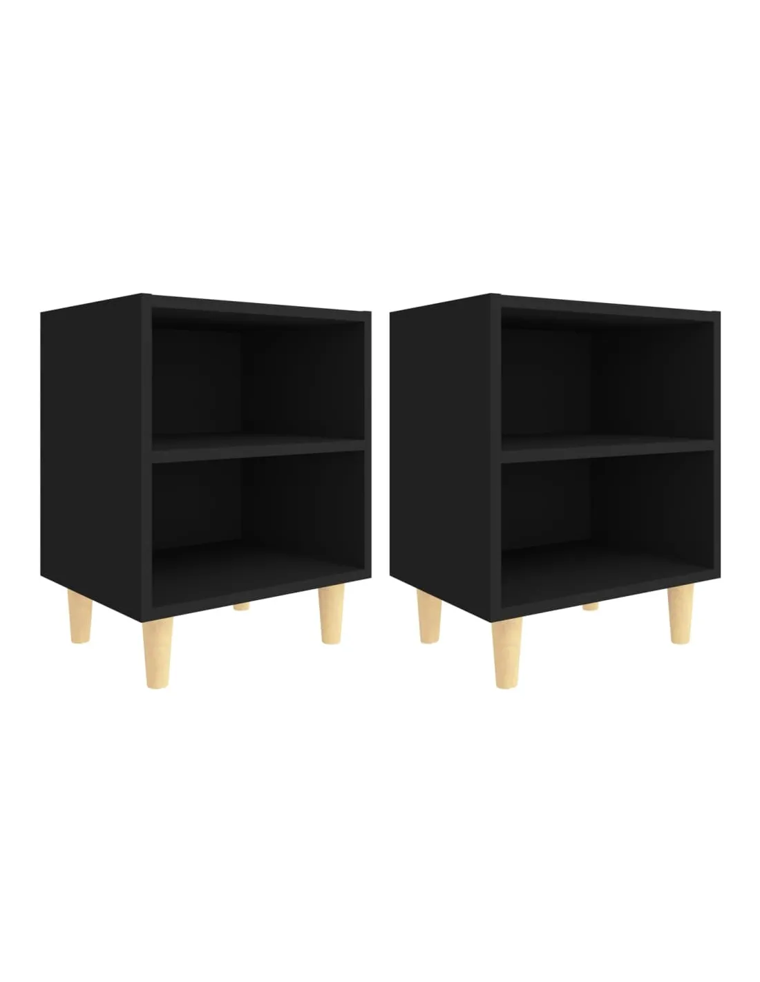 Tables de chevet avec pieds en bois 2 pcs Noir 40x30x50 cm