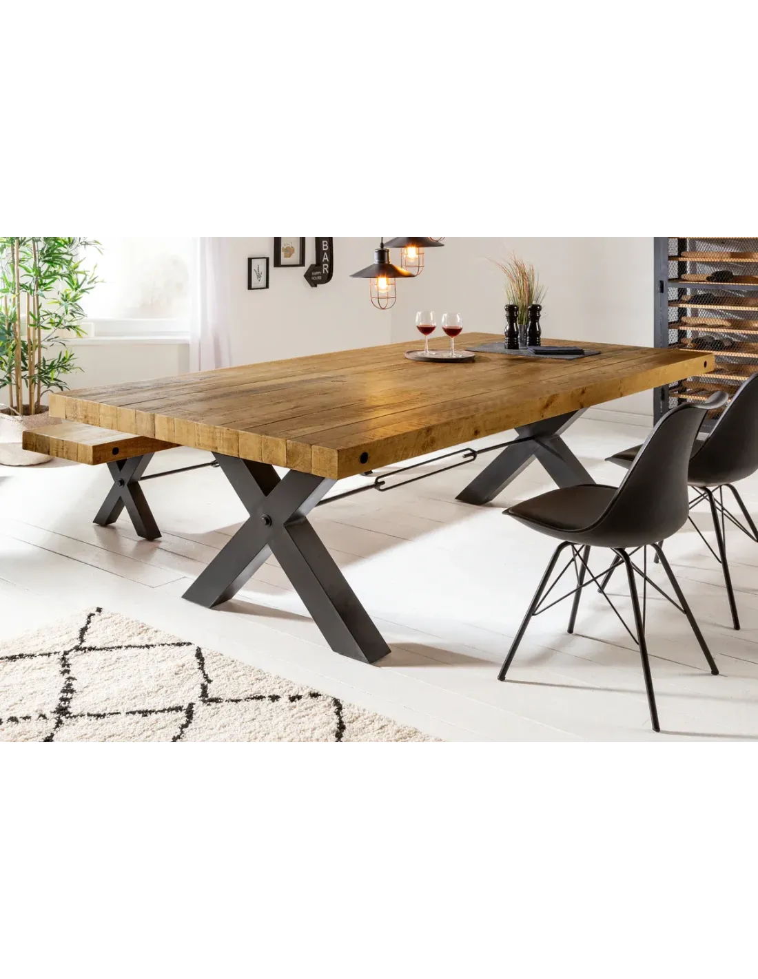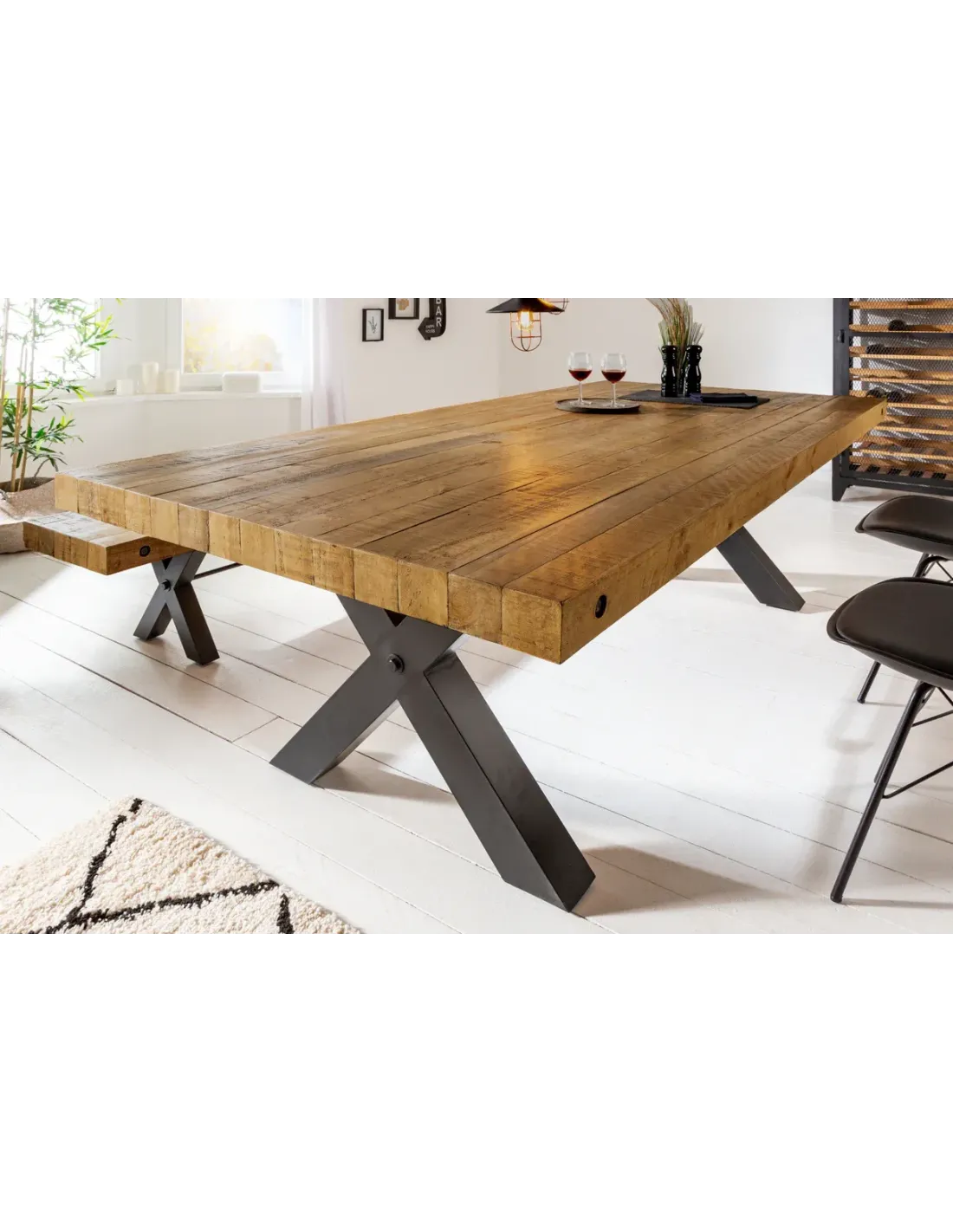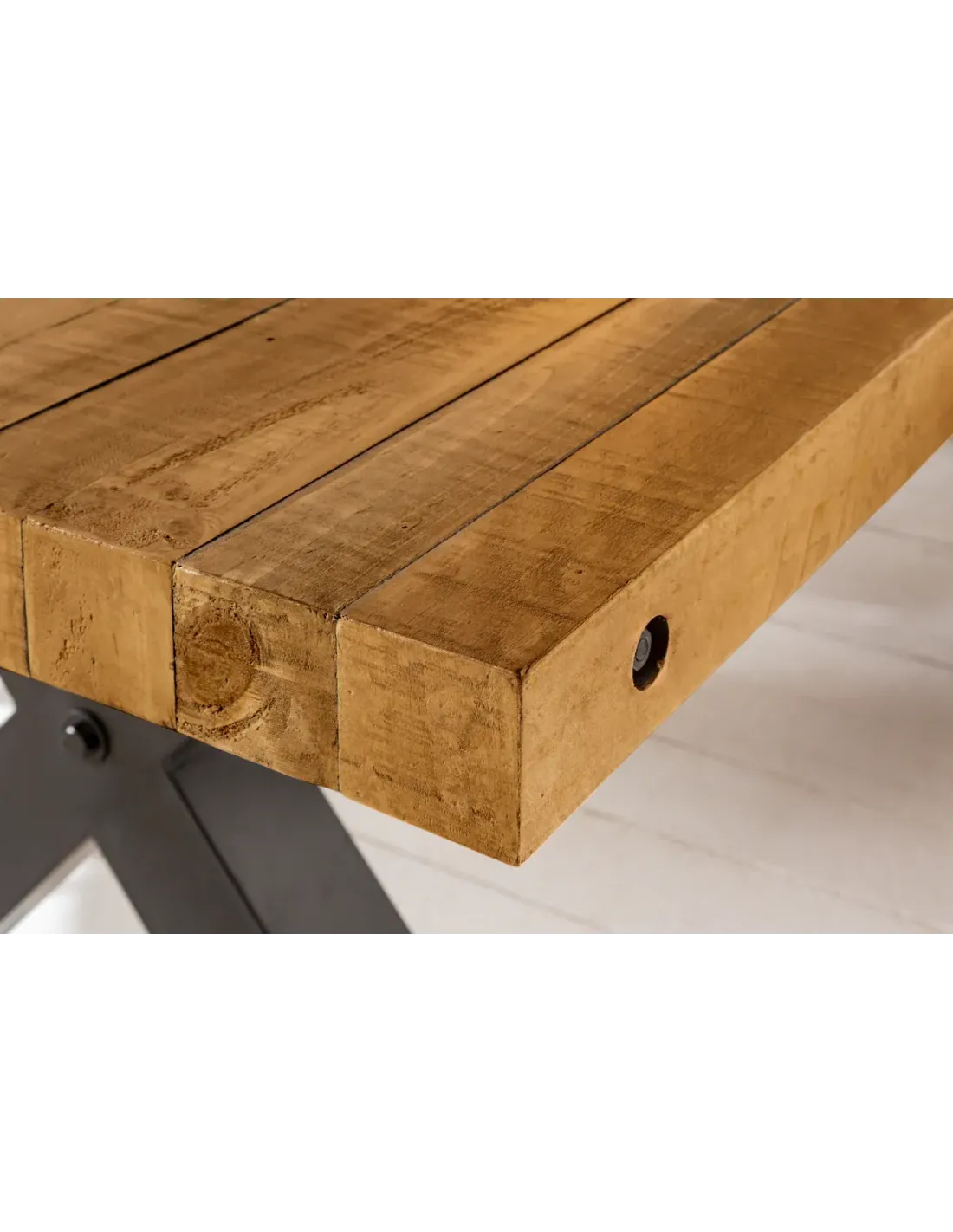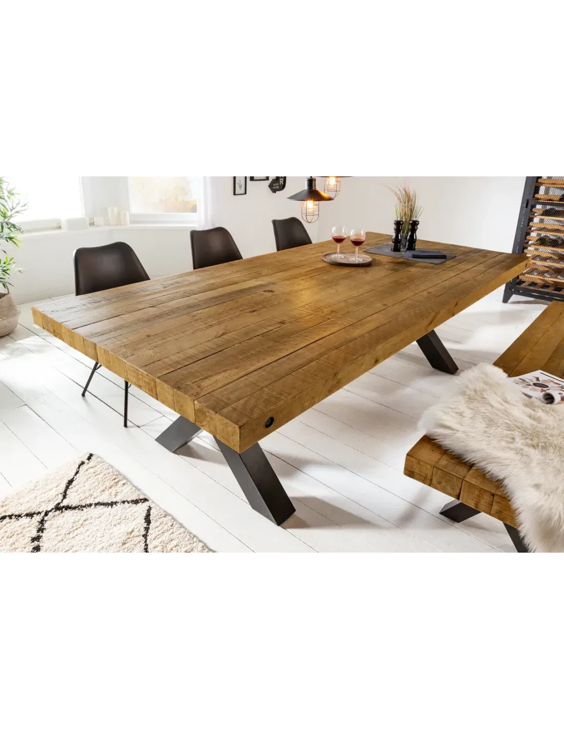 Apportez caractère, robustesse et authenticité à votre intérieur avec la table à manger THOR. Véritable hommage à la force brute et à l’élégance naturelle, cette table combine la chaleur du pin recyclé et la stabilité de pieds en X en métal noir, pour un rendu à la fois industriel et chaleureux. Idéale pour les grandes tablées, elle incarne la convivialité et la durabilité.