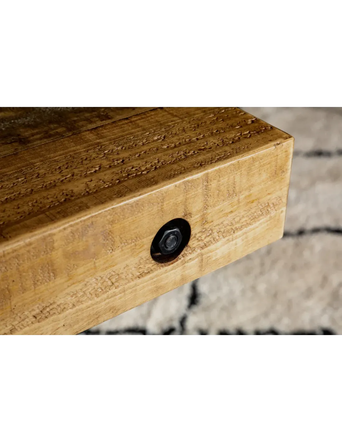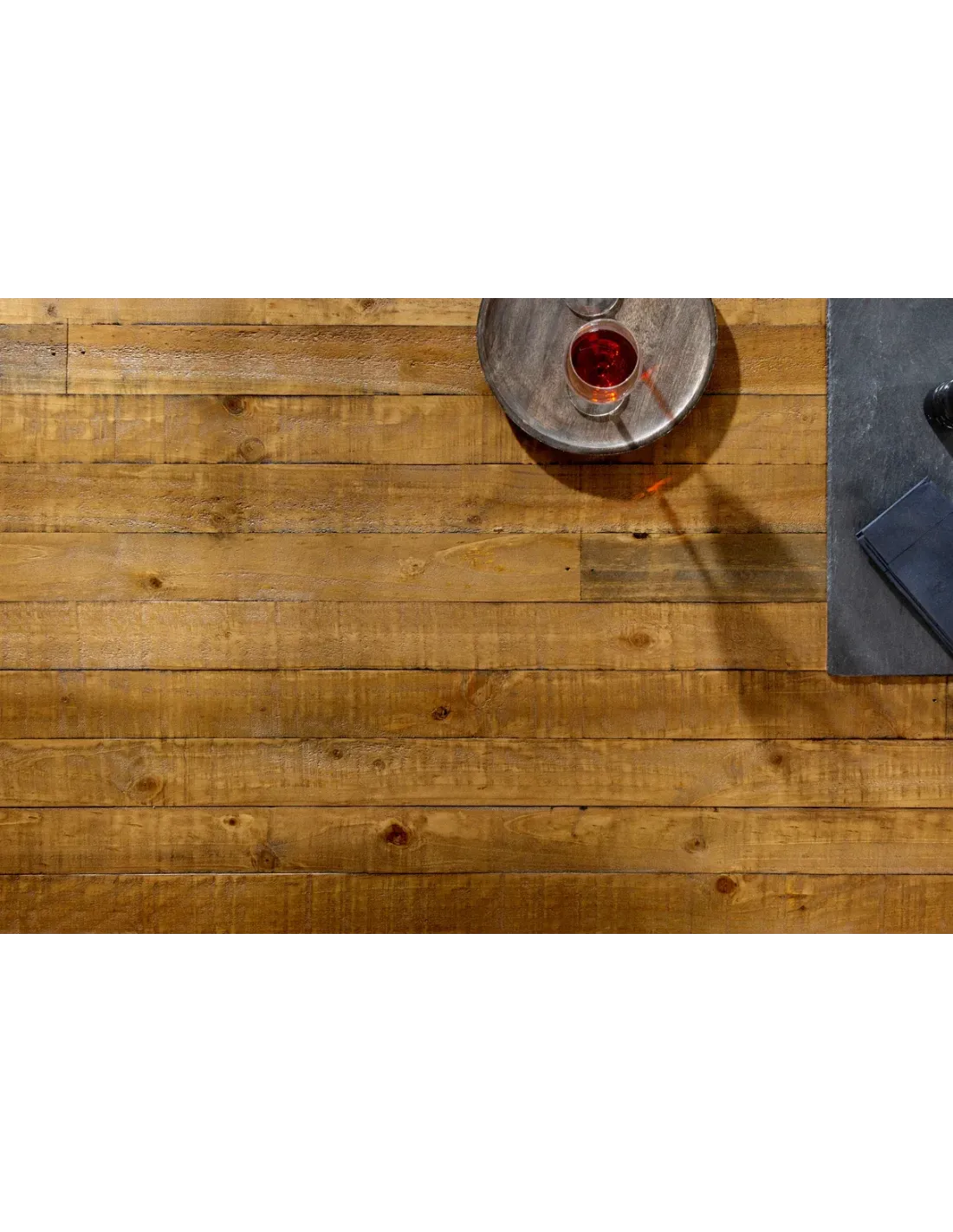 Chaque plateau est fabriqué à partir de bois de pin recyclé, soigneusement sélectionné pour ses nœuds et veinures naturelles qui racontent une histoire. Le vernis brun vintage met en valeur la texture du bois tout en le protégeant, offrant ainsi un aspect à la fois authentique et raffiné. Une pièce de caractère qui s’intègre aussi bien dans un intérieur moderne que rustique.