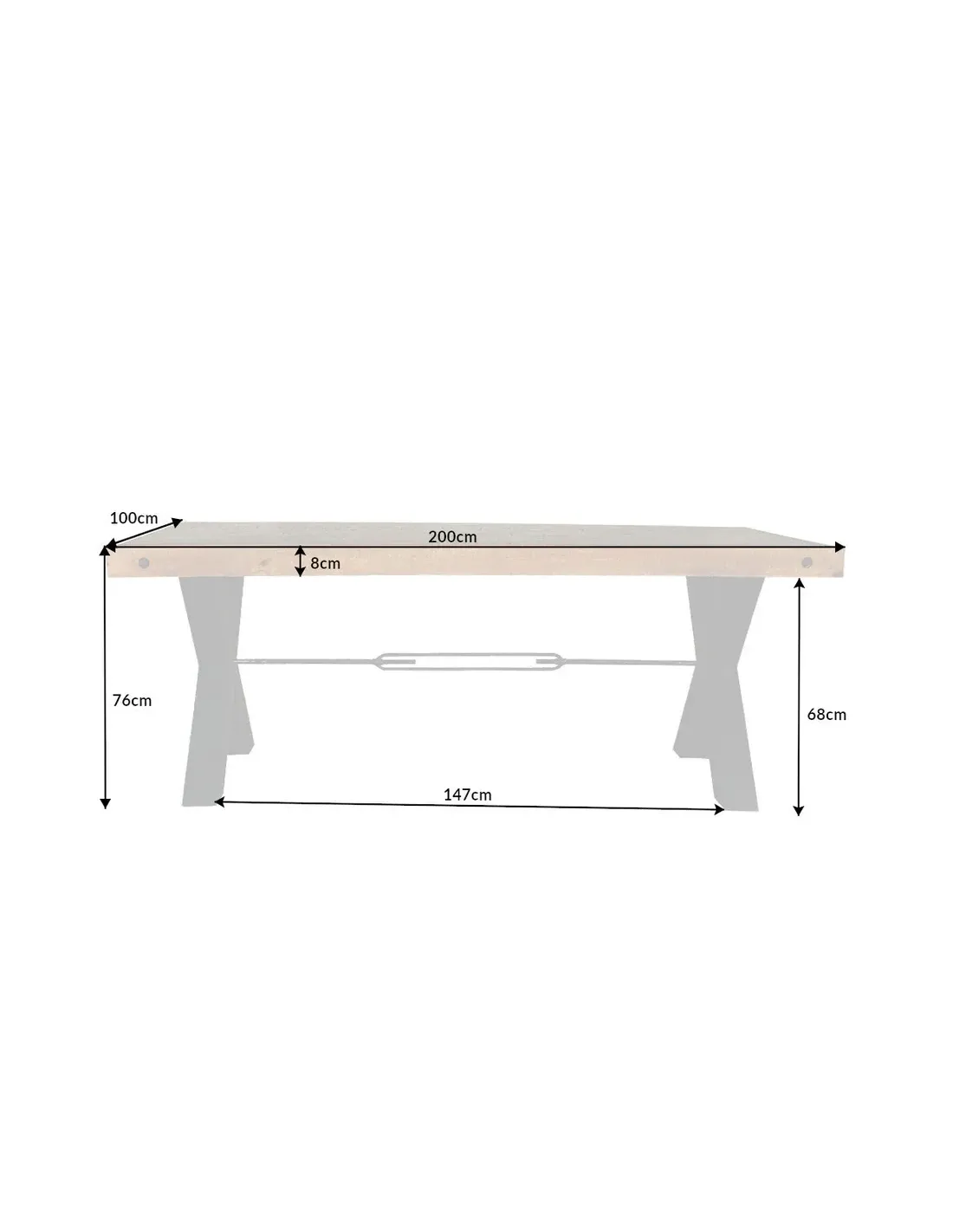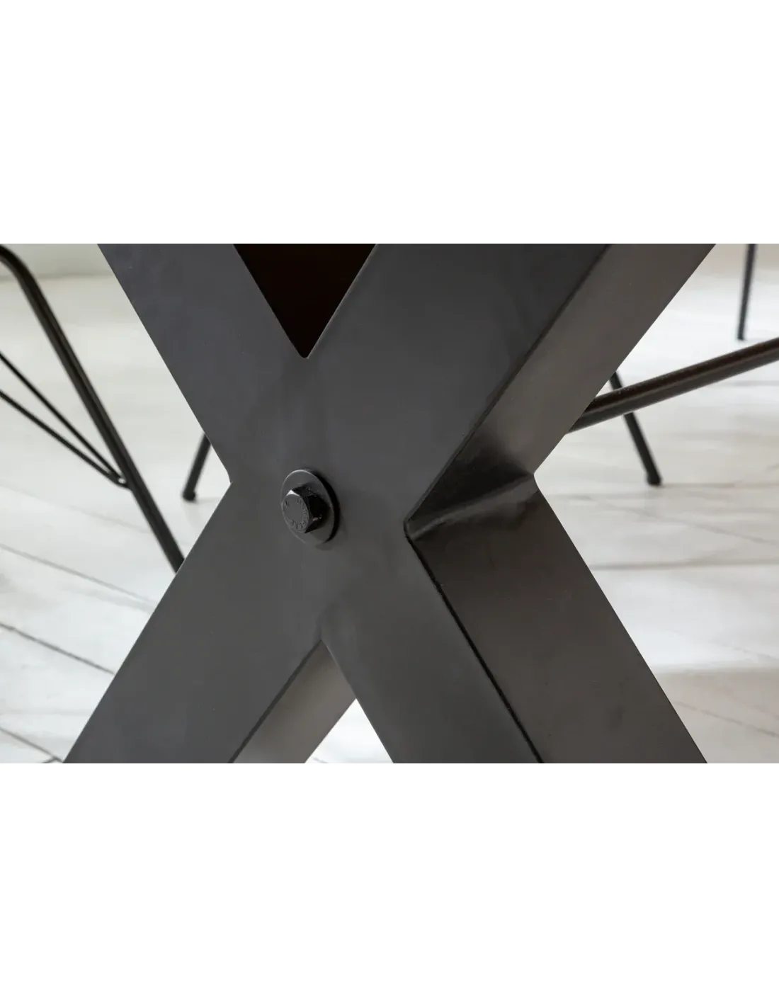 Les pieds en X en métal noir revêtu de poudre garantissent une stabilité exceptionnelle et un style résolument industriel. Conçue pour durer, la table THOR supporte jusqu’à 120 kg de charge grâce à son plateau épais de 8 cm, assurant ainsi une robustesse à toute épreuve.