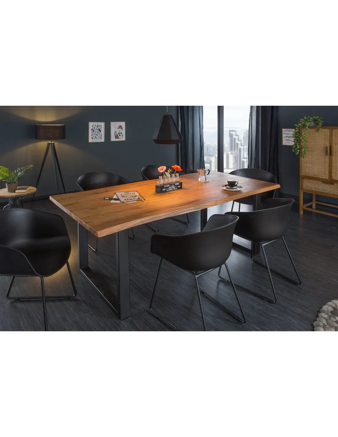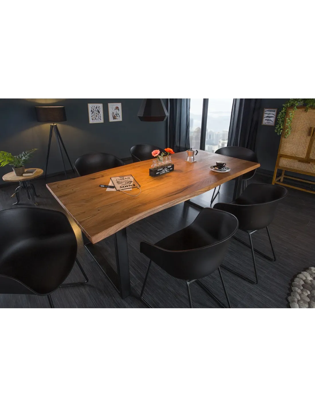 Avec son bois d’acacia massif, cette table apporte une atmosphère chaleureuse et naturelle. Son cadre en acier noir lui confère une touche industrielle et une robustesse exceptionnelle, lui permettant de s’intégrer aussi bien dans des intérieurs modernes que plus rustiques.