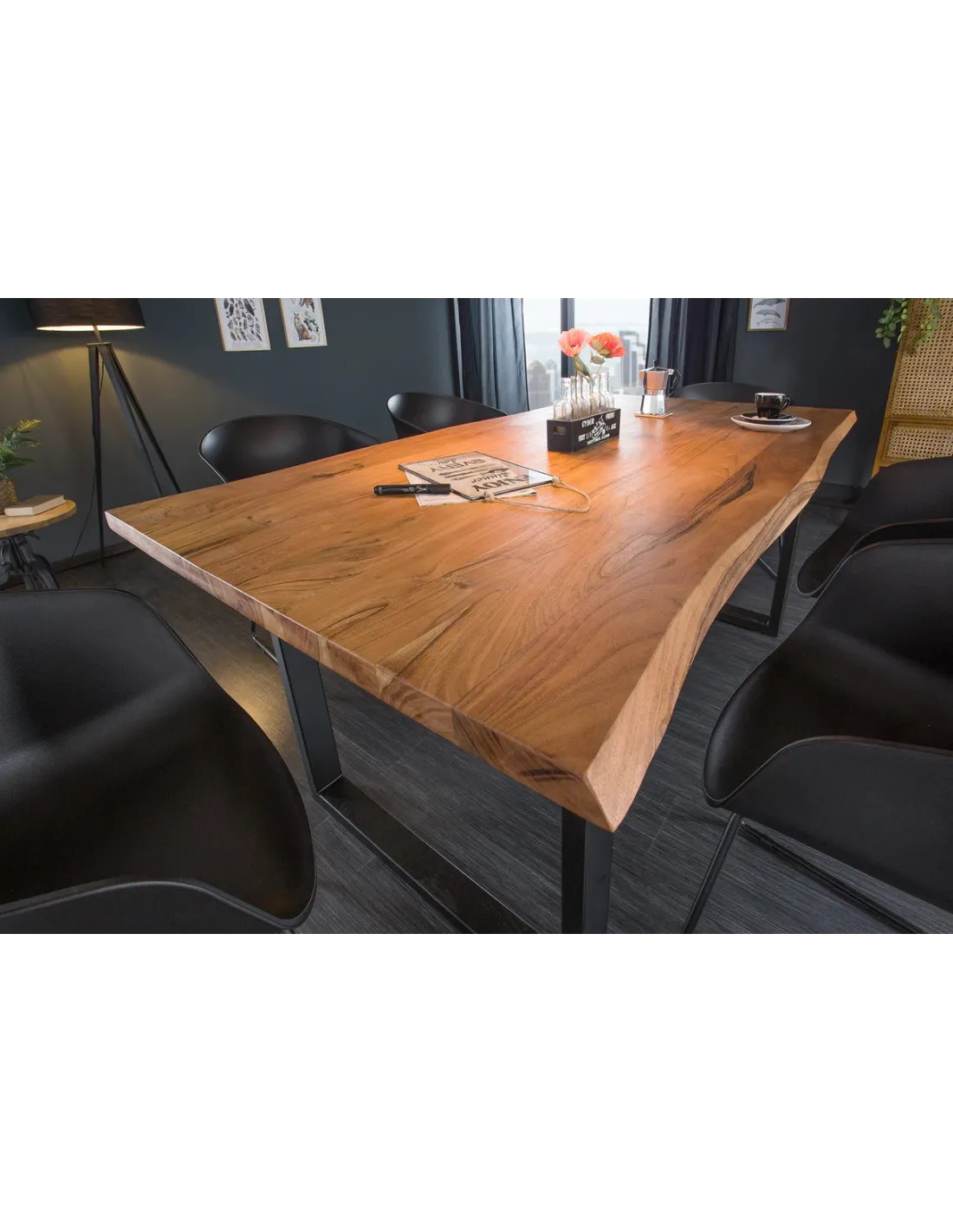Apportez une touche d’authenticité et de modernité à votre intérieur avec cette magnifique table en bois d'acacia. Son design industriel et naturel en fait une pièce maîtresse parfaite pour votre salle à manger ou votre espace de travail.