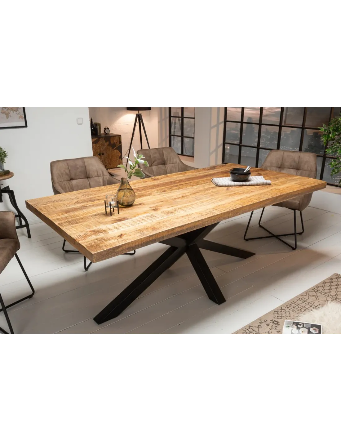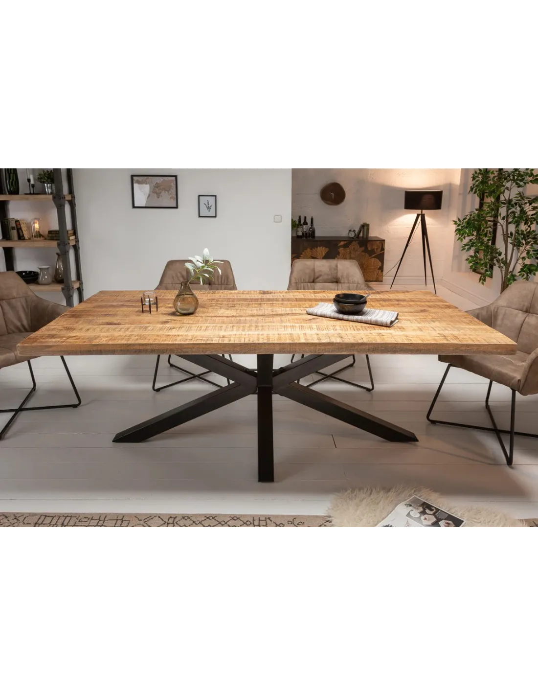 Table à manger GALAXIE 180 cm – Bois de manguier naturel et métal