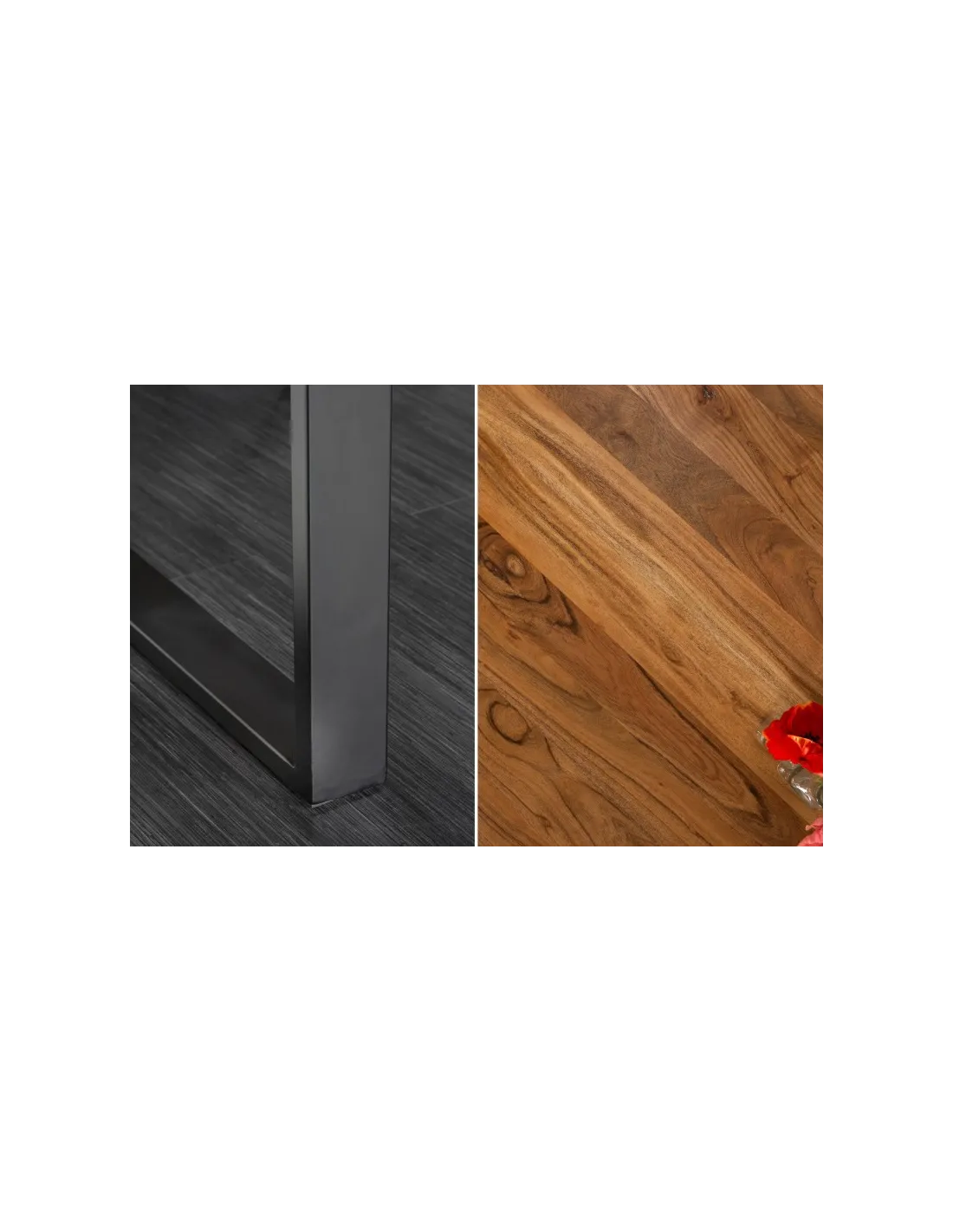 bord d'arbre naturel et un cadre en acier peint par poudrage dans un aspect industriel rugueux.