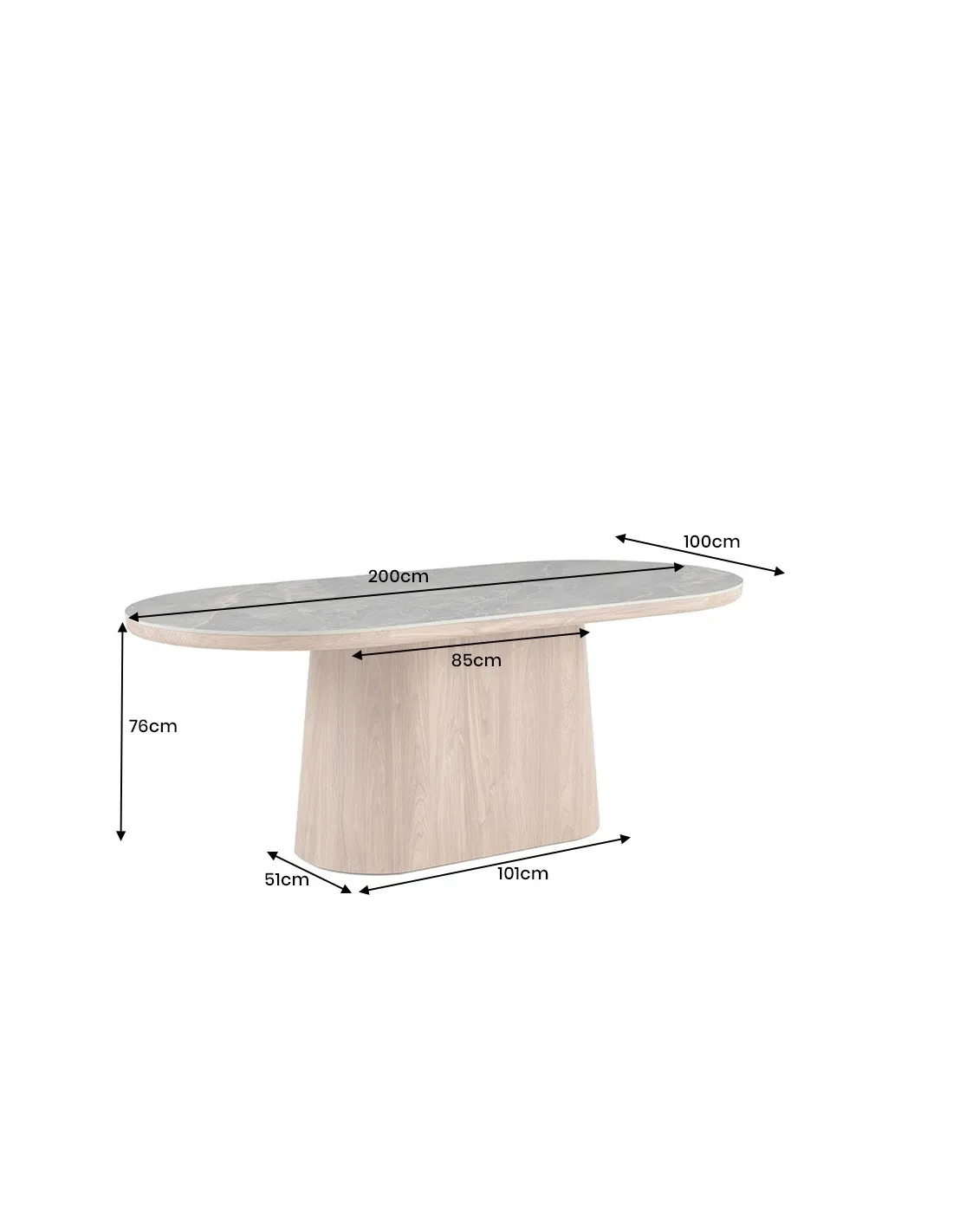 Dimensions totales : L 200 x P 100 x H 76 cm