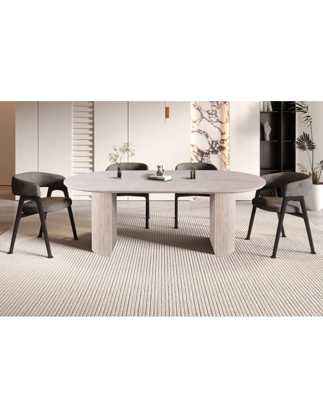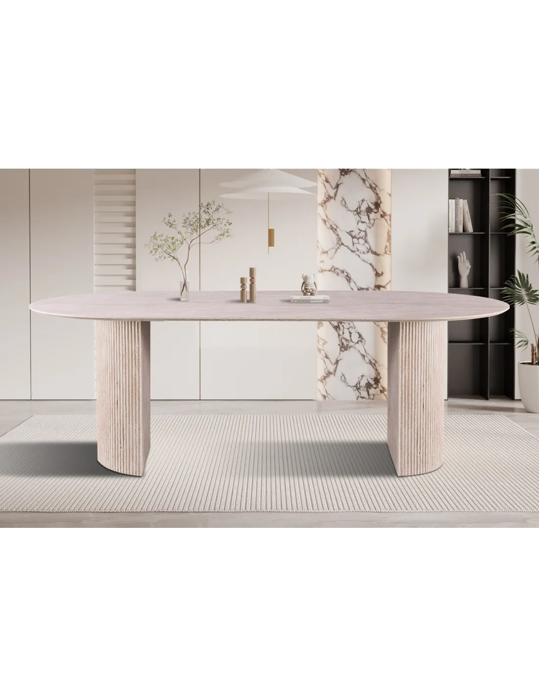 Apportez élégance et luminosité à votre salle à manger avec la table LAGOS 220 cm ovale. Son décor travertin beige effet pierre naturelle apporte une touche chaleureuse et raffinée, idéale pour un intérieur moderne, naturel ou minimaliste.
