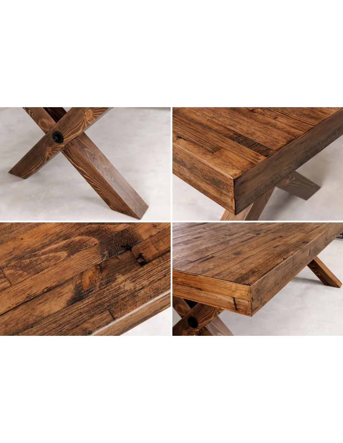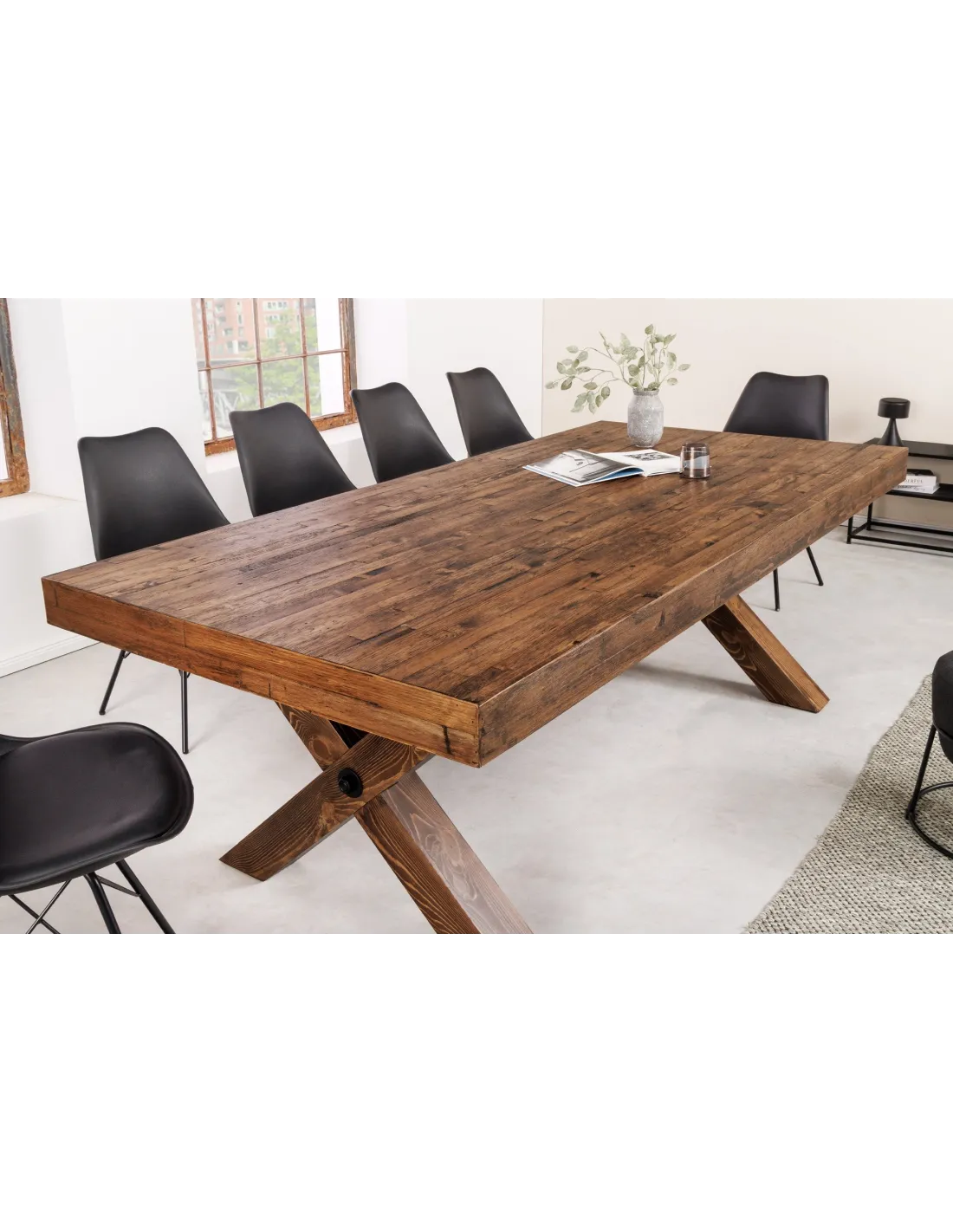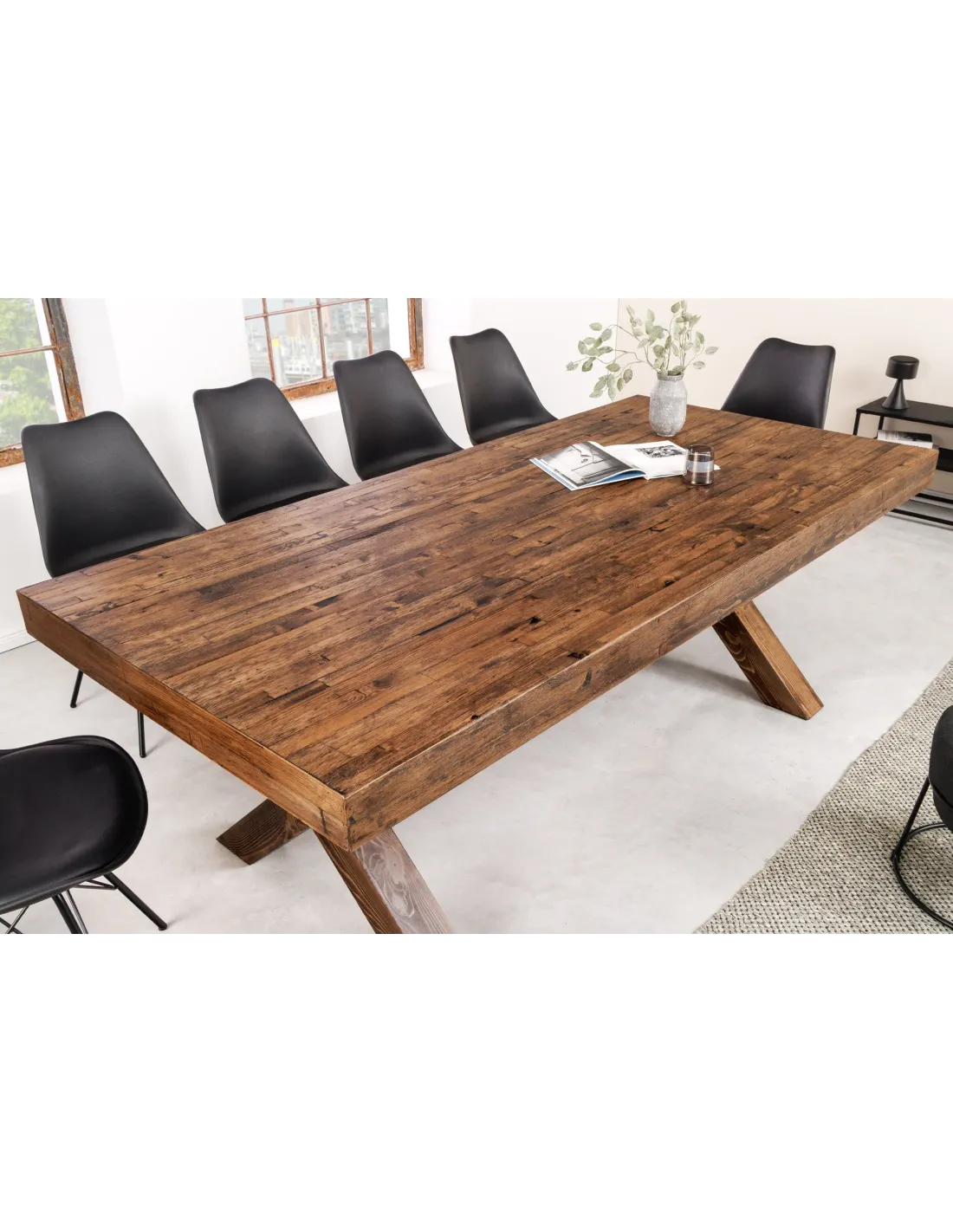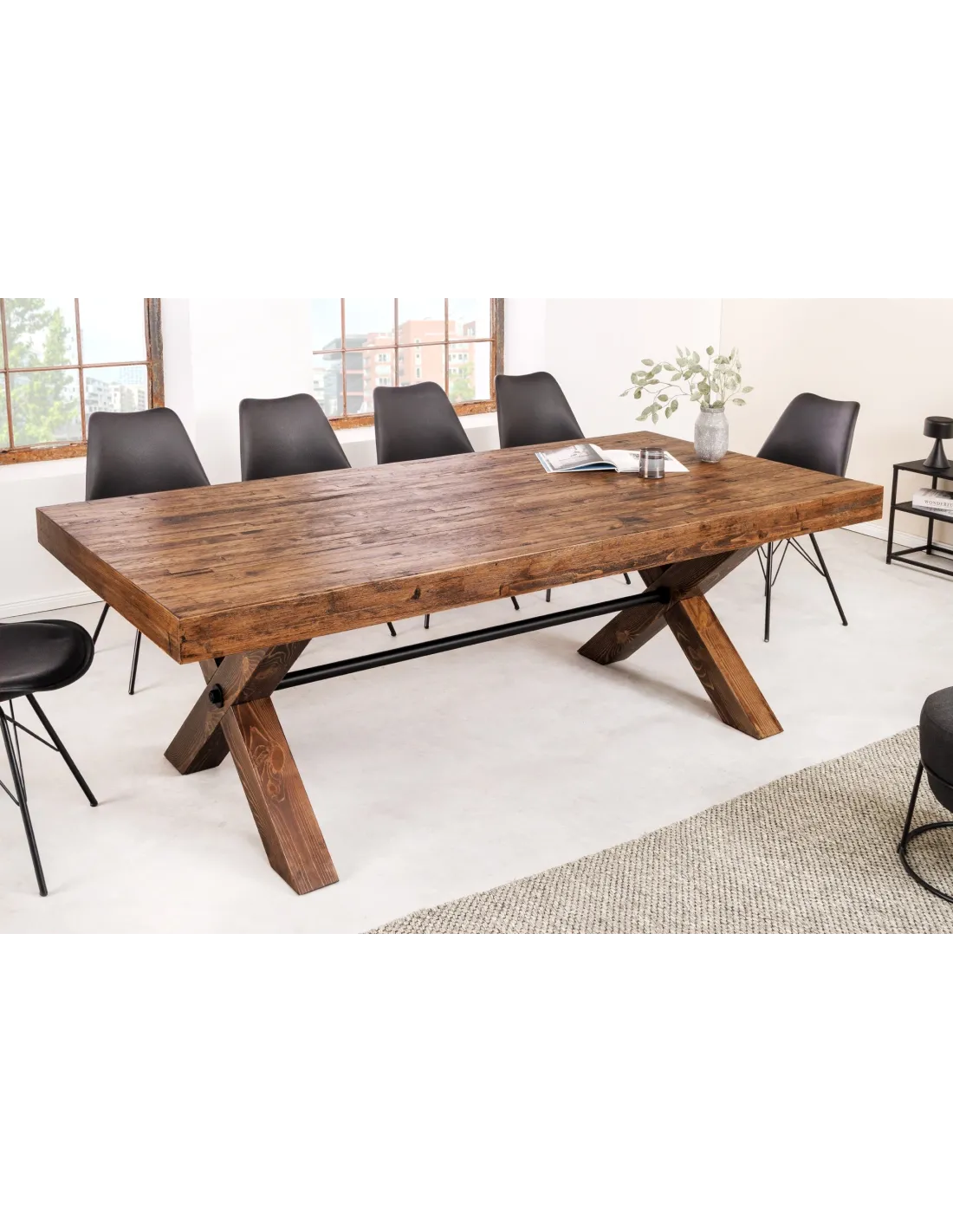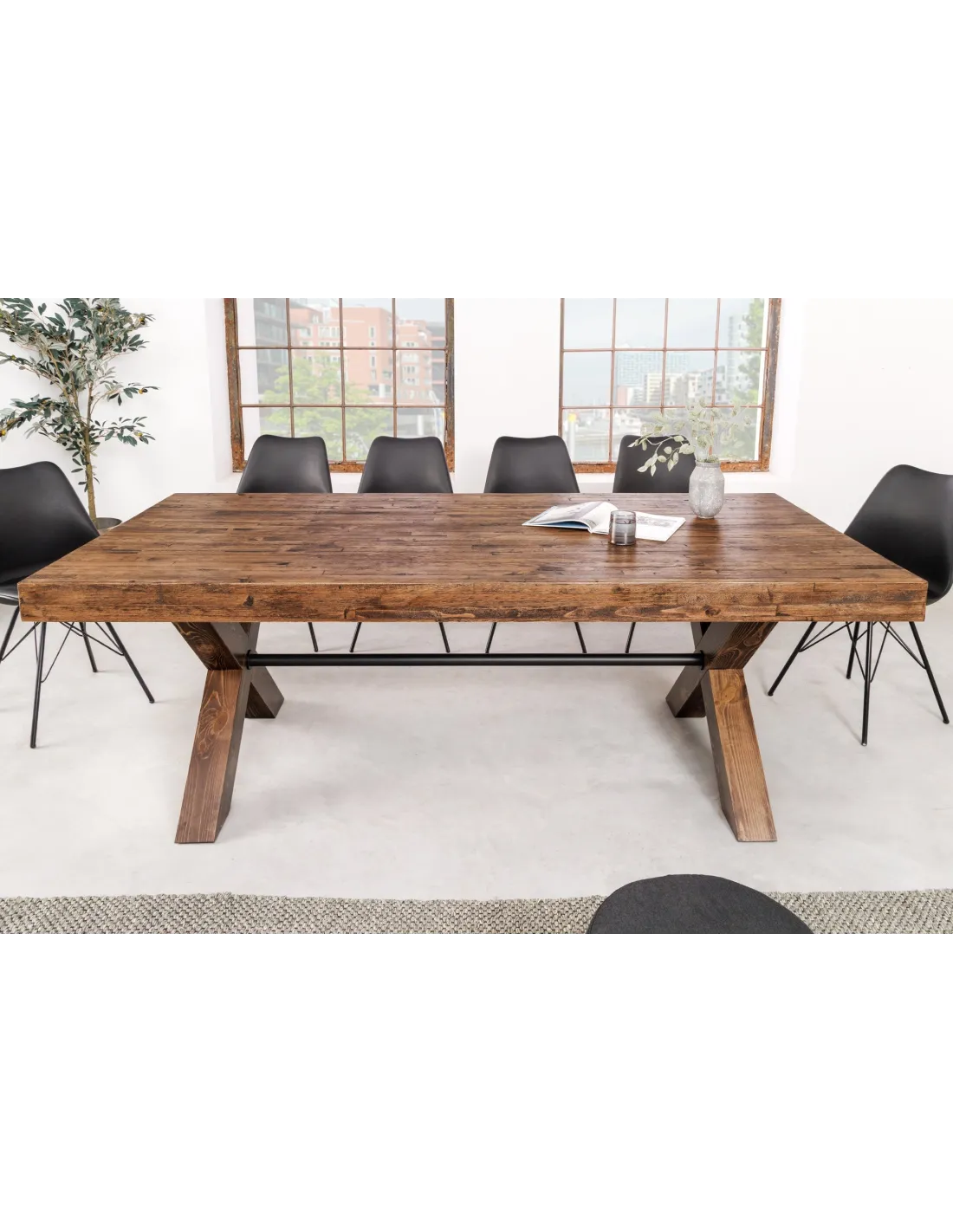 Table à manger industrielle GOLIATH 210cm pin naturel structure X métal noir