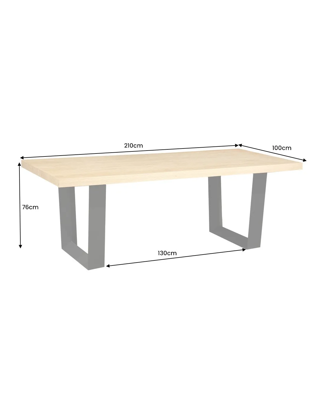 Alliez force et modernité avec la table ZEUS 210 cm. Son plateau en chêne naturel et sa structure en U en métal noir offrent un design industriel raffiné et un espace généreux pour recevoir famille et invités avec élégance.