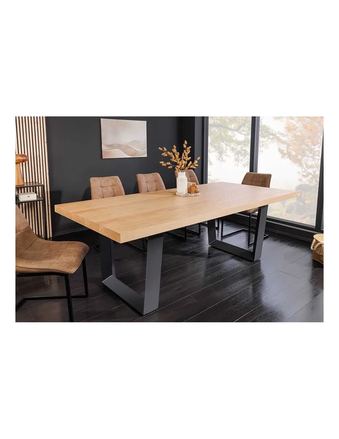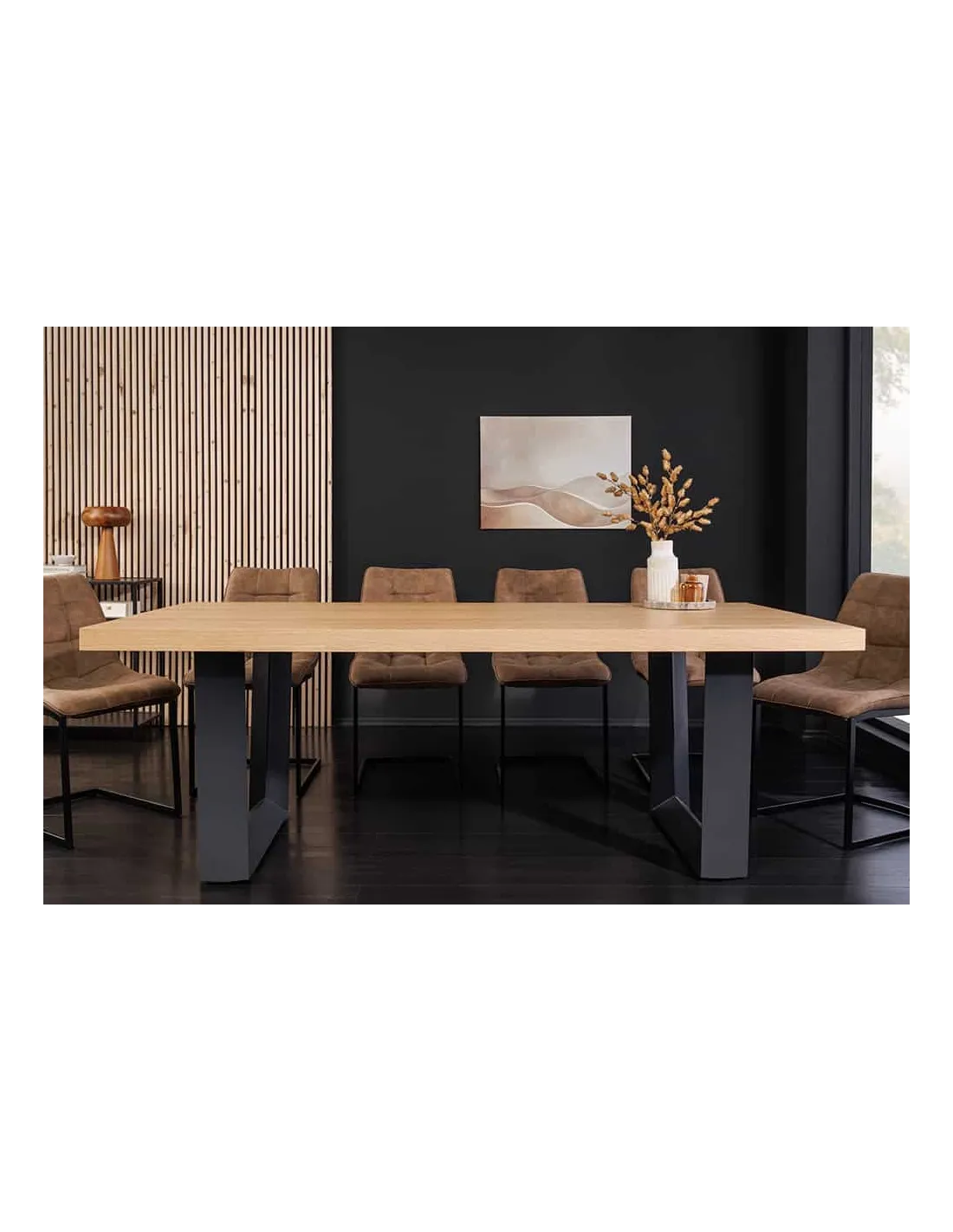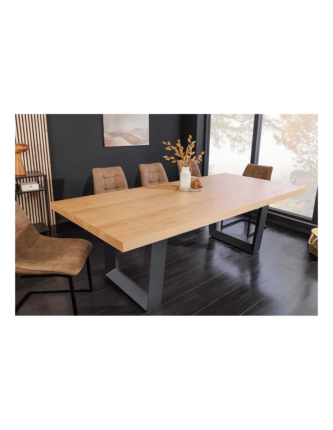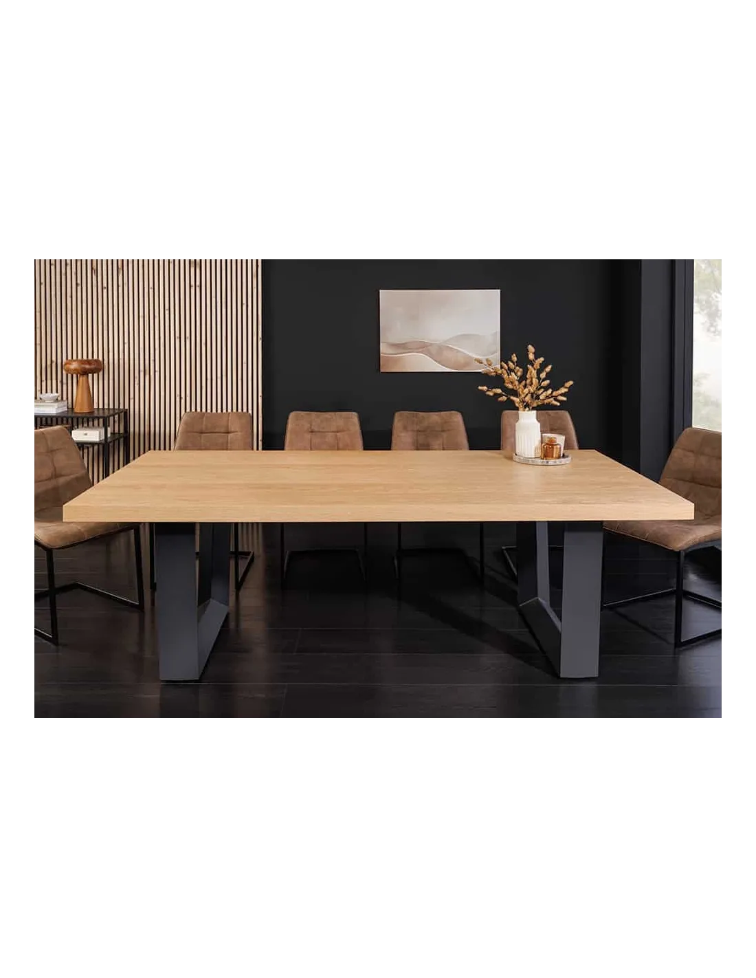 Impressionnante table à manger ZEUS 210cm chêne naturel noir avec structure en U en métal