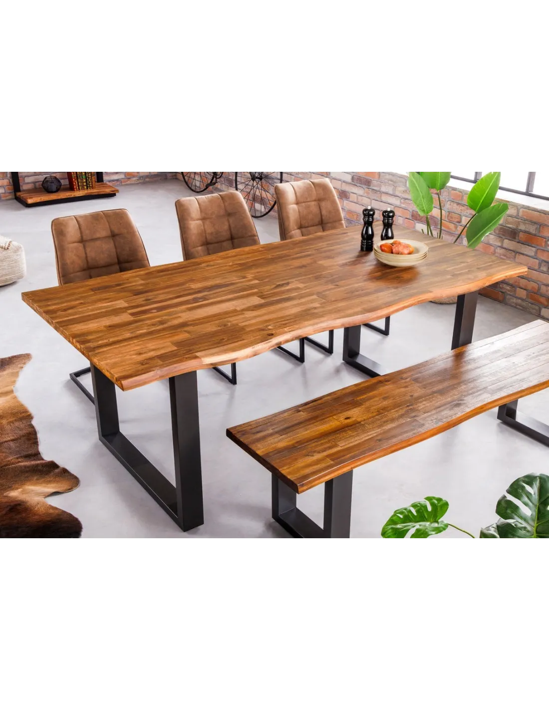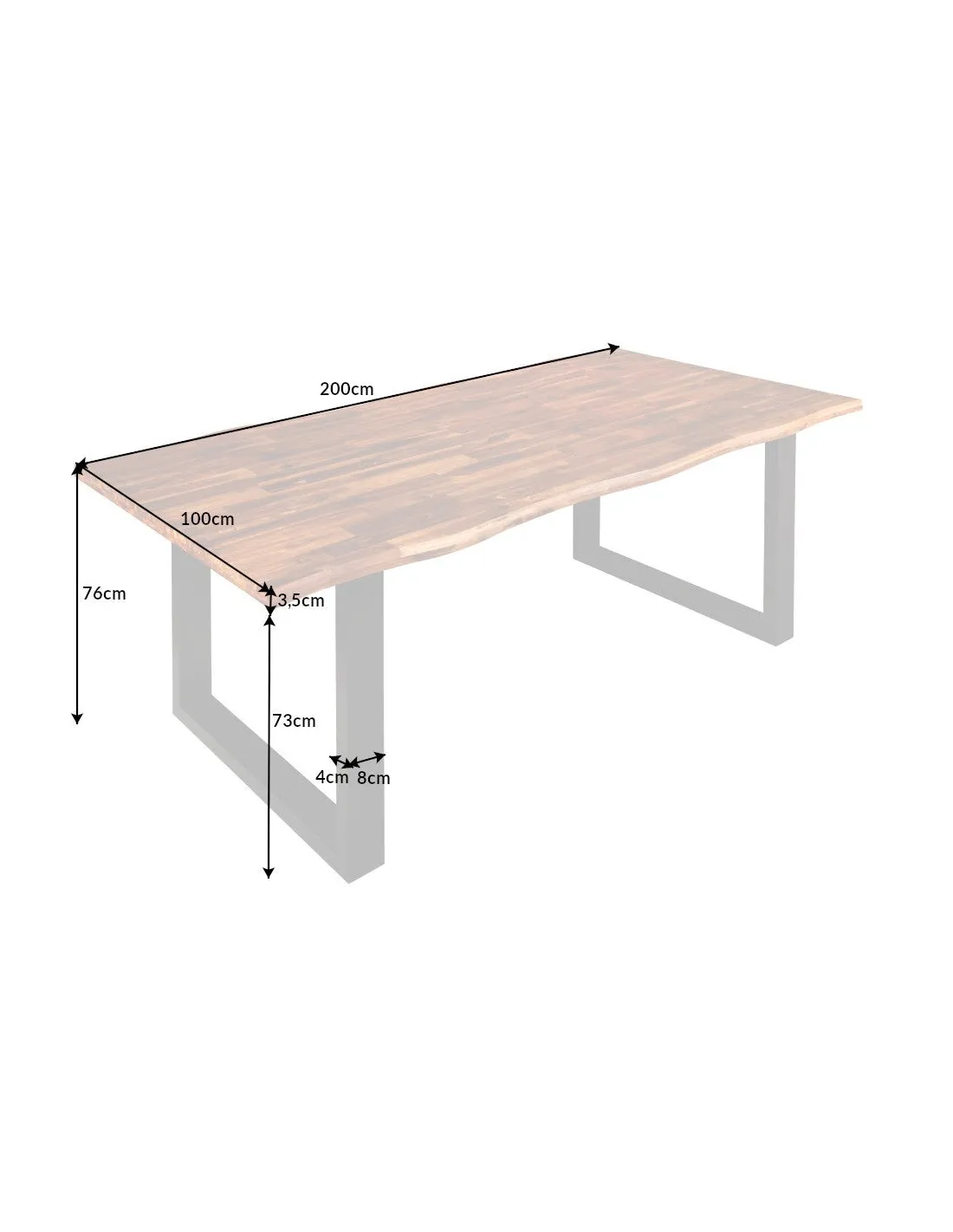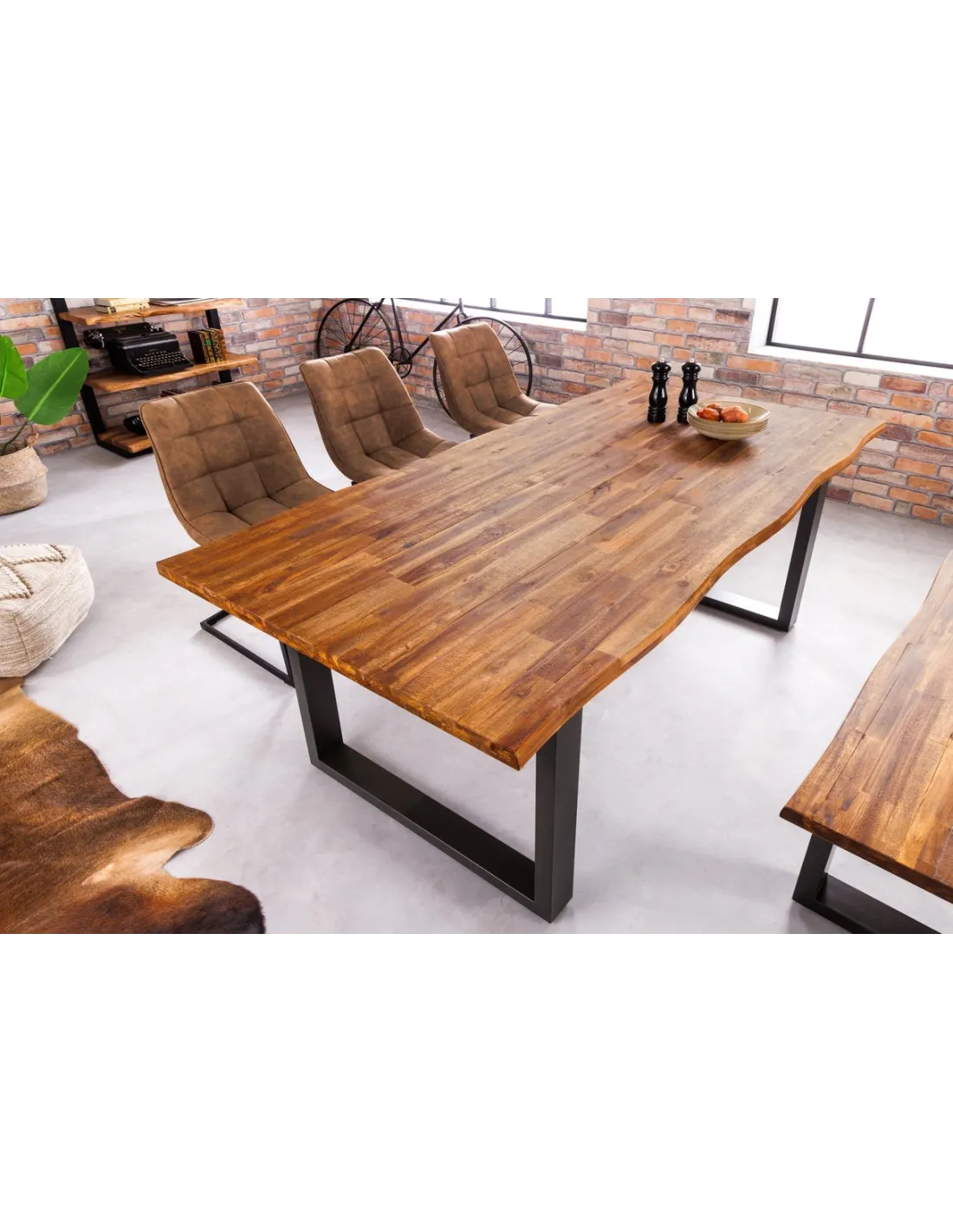 Robuste, élégante et pratique ! Cette table moderne naturelle sera la pièce la plus attractive chez vous ! Sa fabrication est réalisée par une main d'œuvre qualifiée à partir du bois d'acacia massif du meilleure qualité avec des pieds en métal anthracite, Grâce à sa dimension suffisante elle vous permettra de recueillir aisément vos convives sans compter !