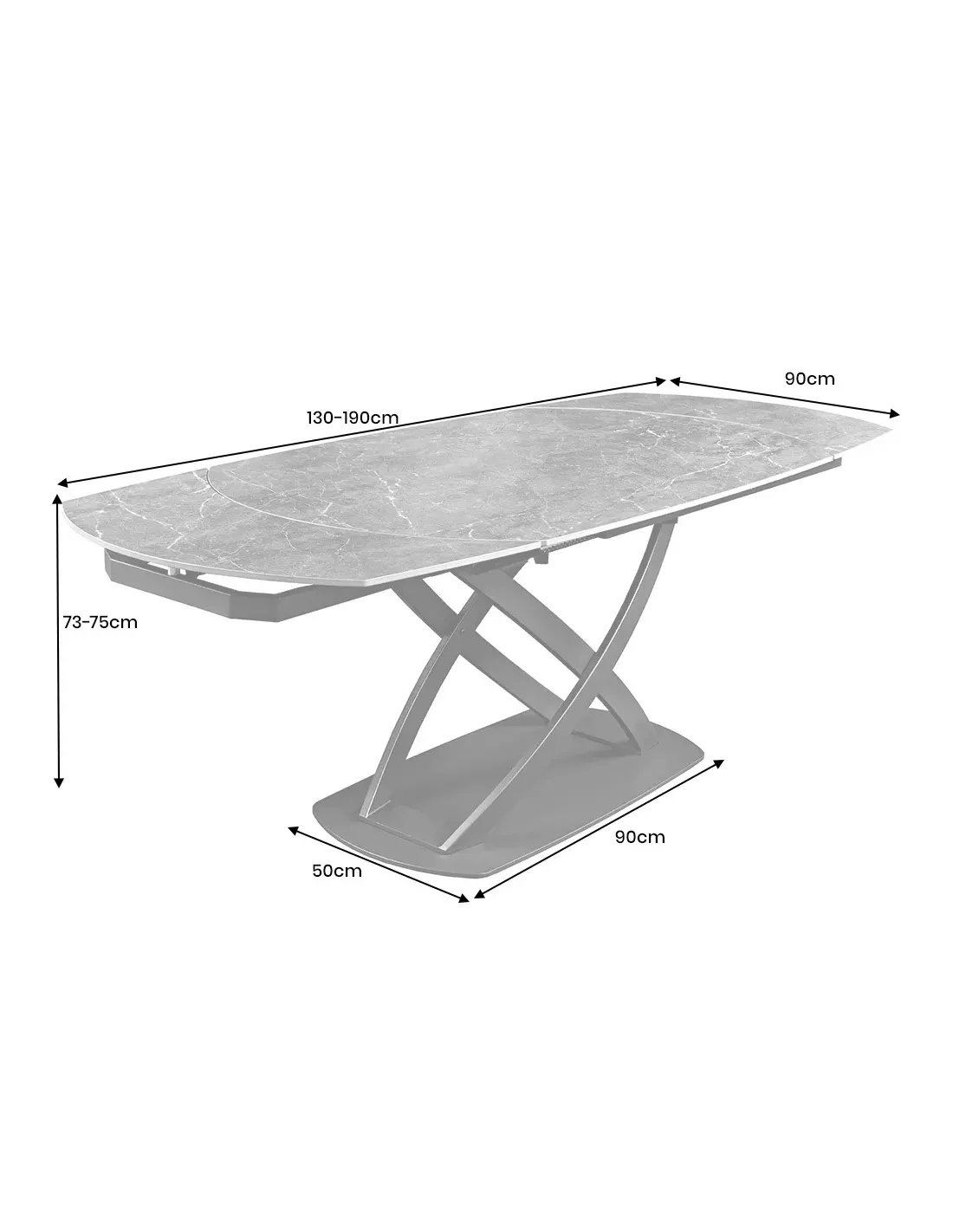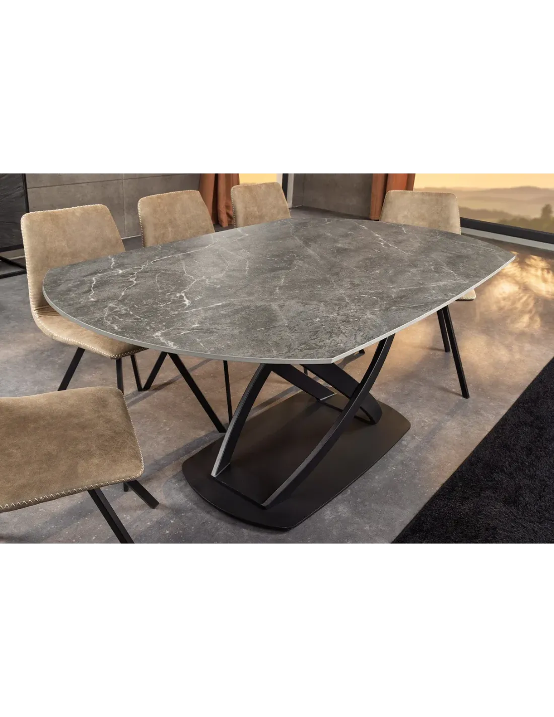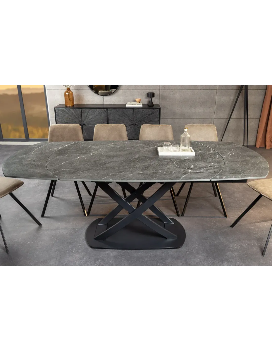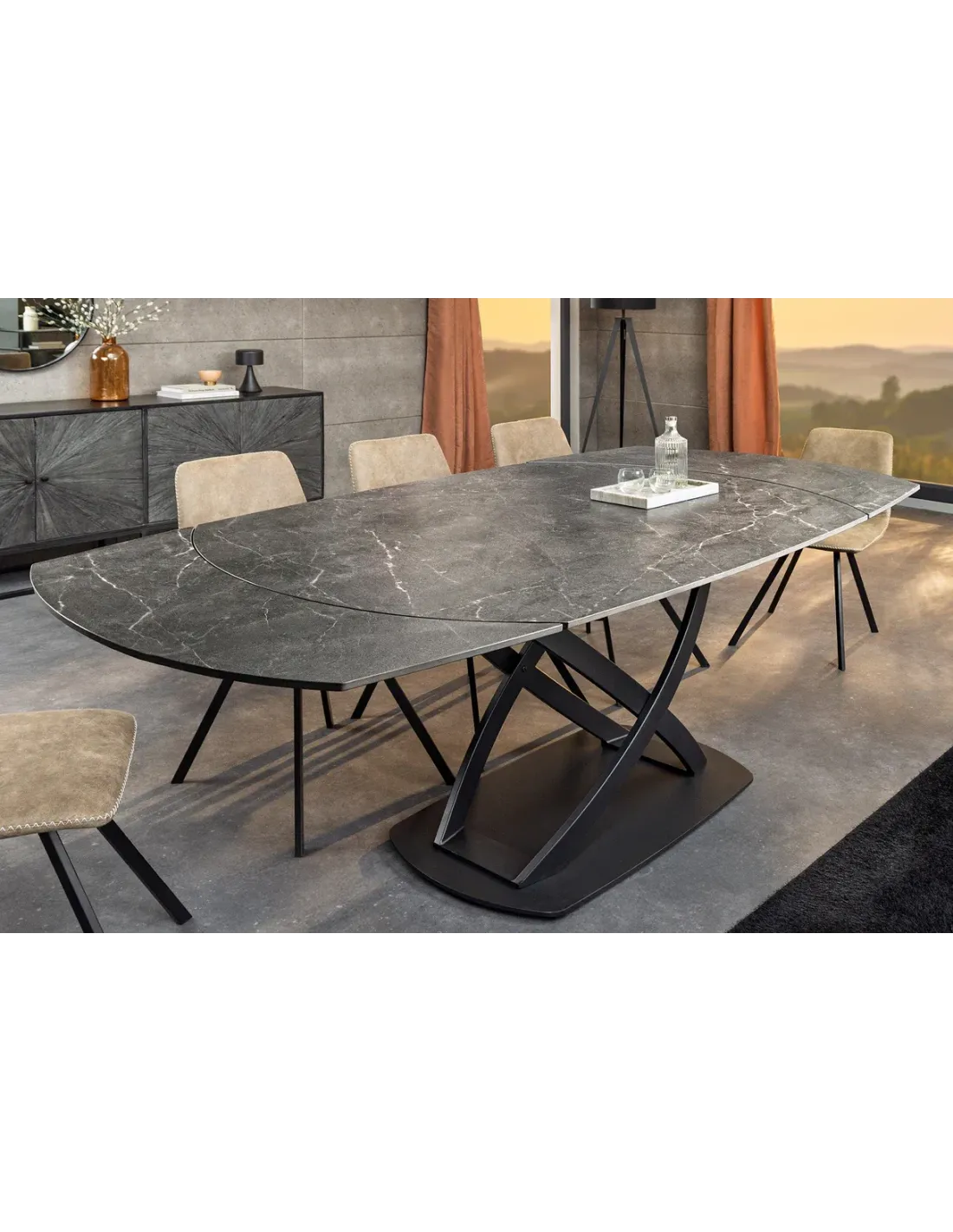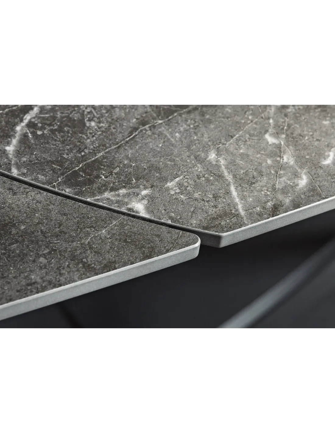 Table à manger INCEPTION 130–190 cm extensible – Plateau céramique travertin –...