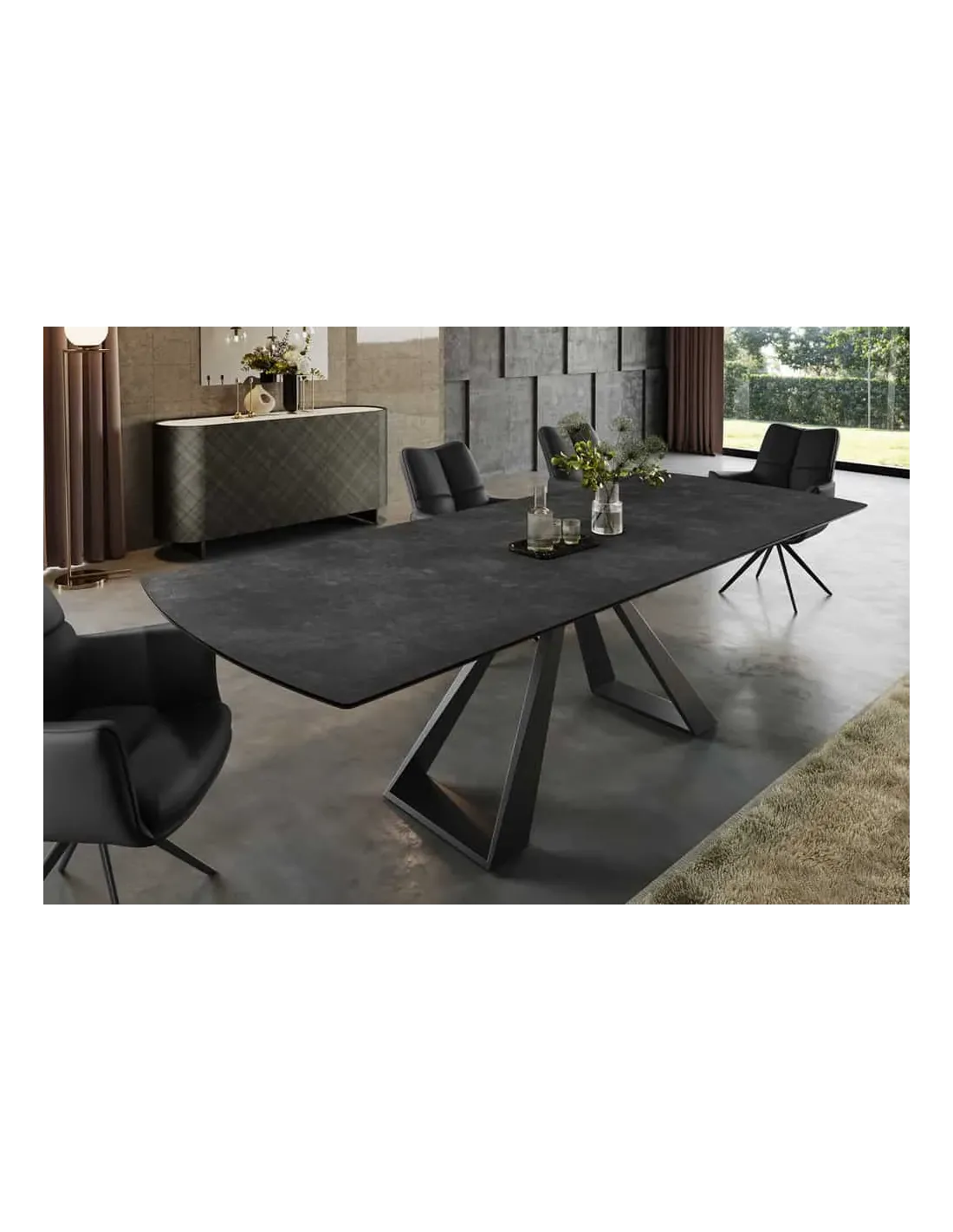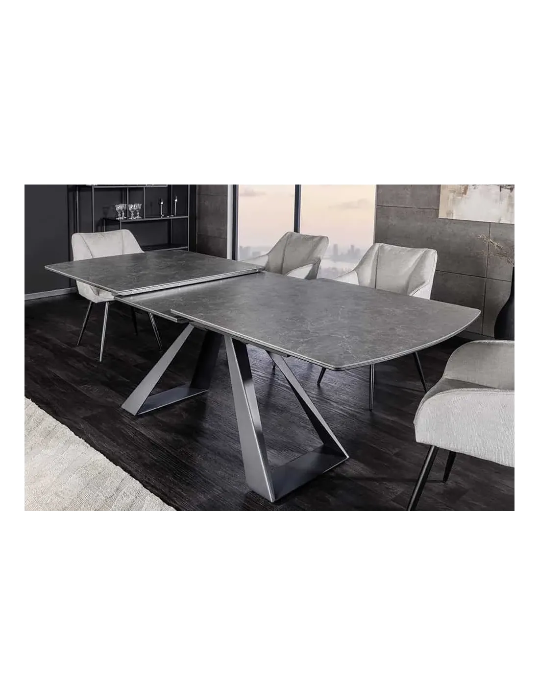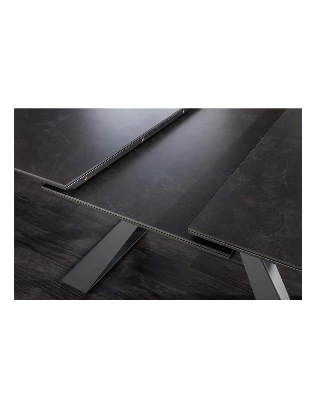 La table CONCORD aspect marbre graphite est idéale pour ceux qui recherchent une solution extensible élégante et robuste. Son design marbre sombre et son piètement noir en font une pièce forte et intemporelle, parfaite pour accueillir famille et amis en toute convivialité.