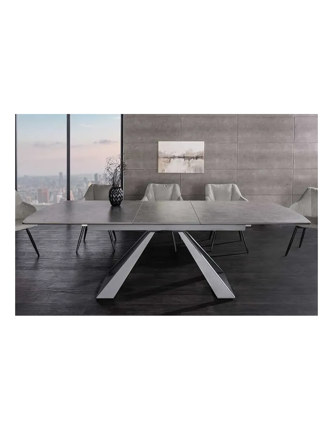 Alliez élégance contemporaine et praticité avec la table extensible CONCORD. Grâce à son plateau en céramique et verre trempé finition marbre graphite, elle apporte à votre salle à manger un style raffiné et moderne, tout en offrant une grande robustesse.