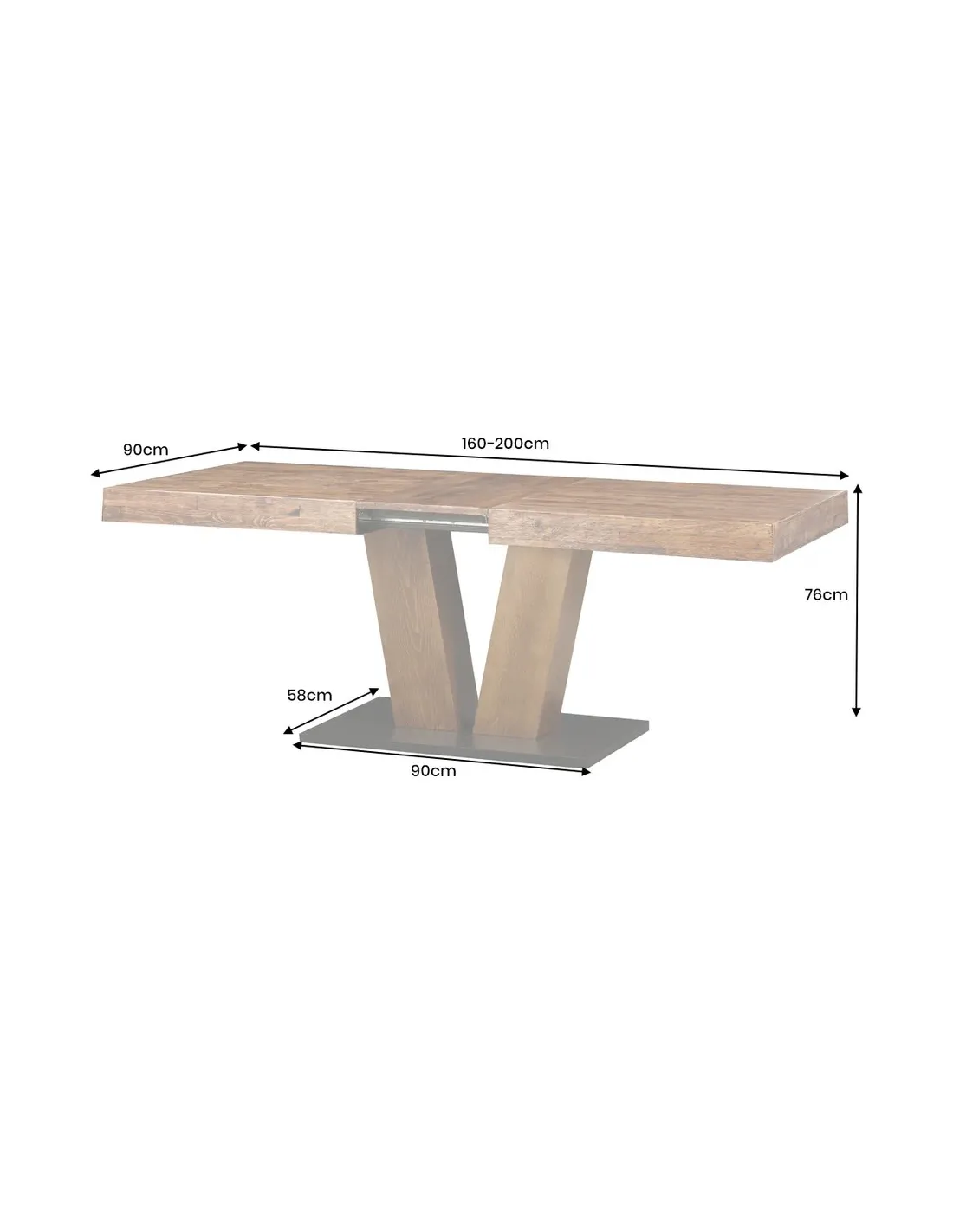 Alliez authenticité et praticité avec la table extensible RANCHO 160–200 cm . Son plateau en pin naturel , sa base noire et sa structure en V offrent un style rustique moderne , parfait pour accueillir famille et amis avec élégance.