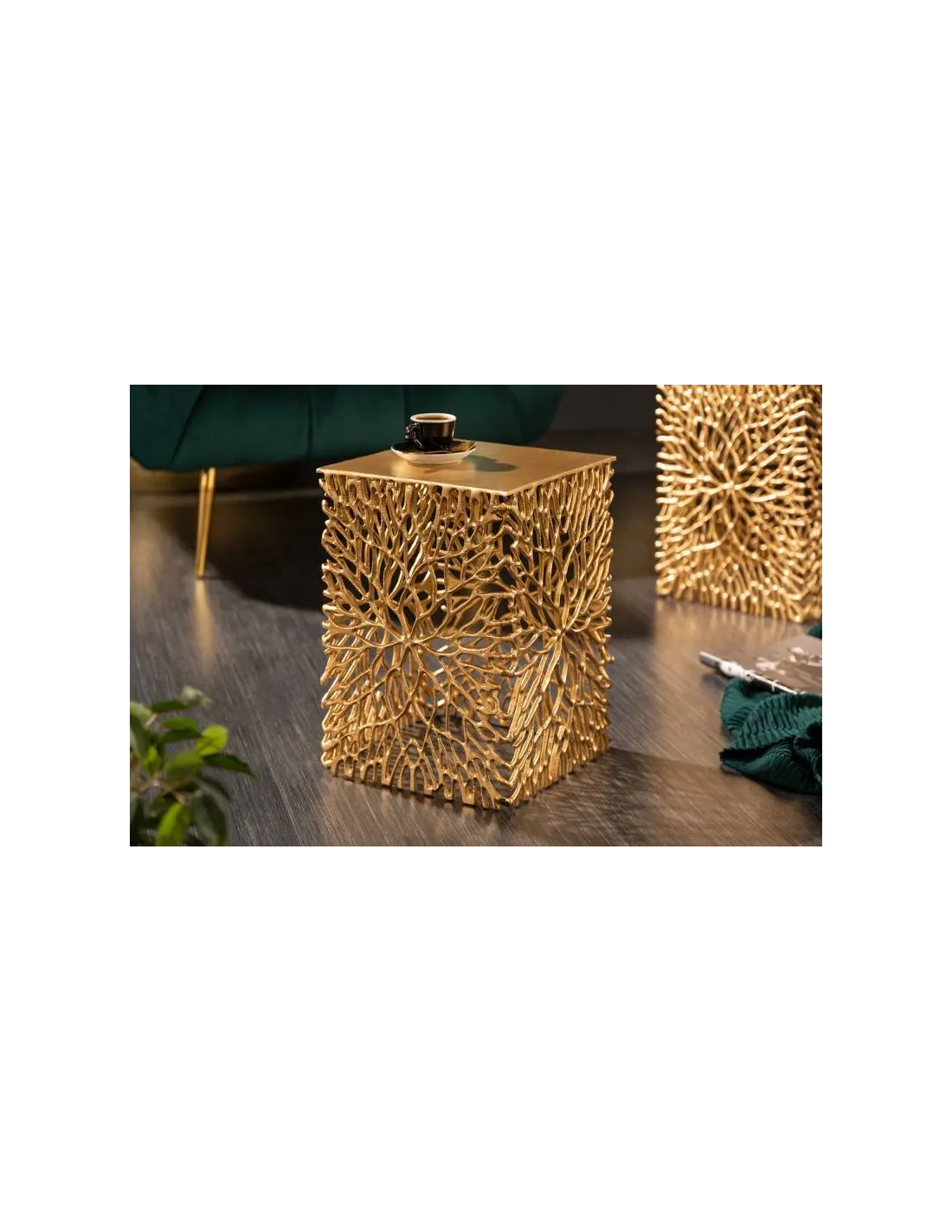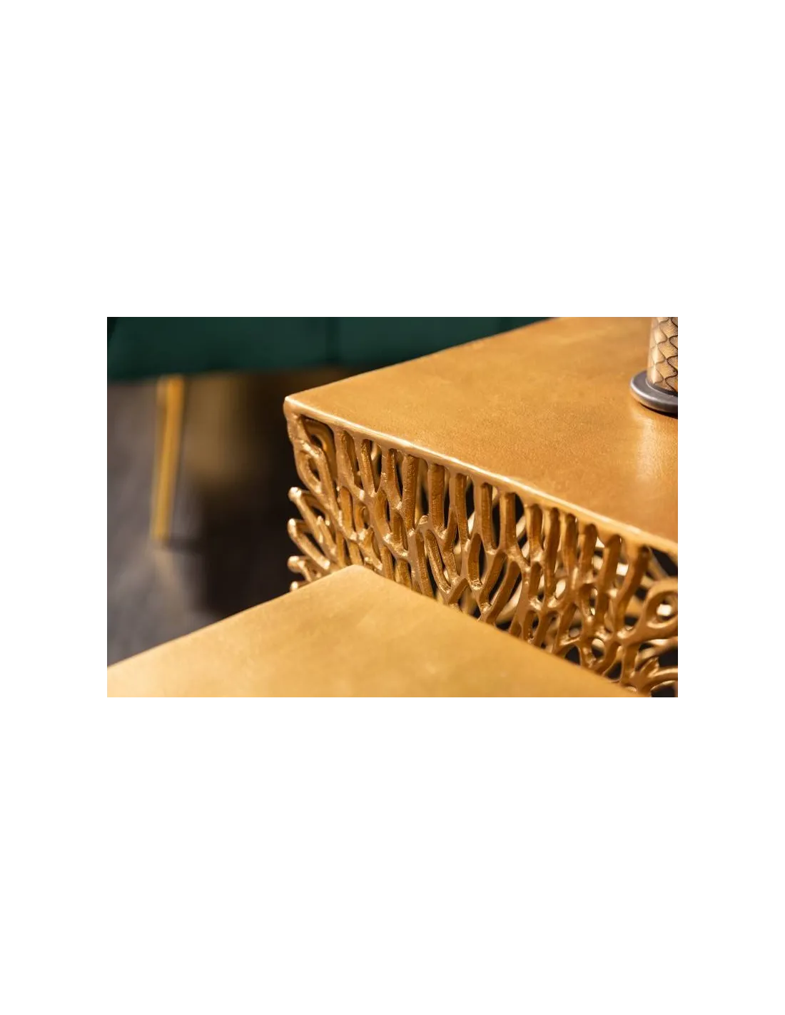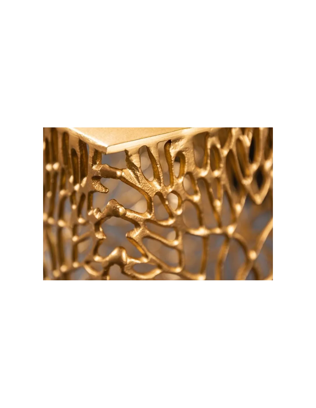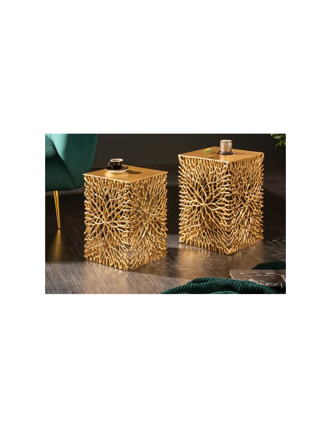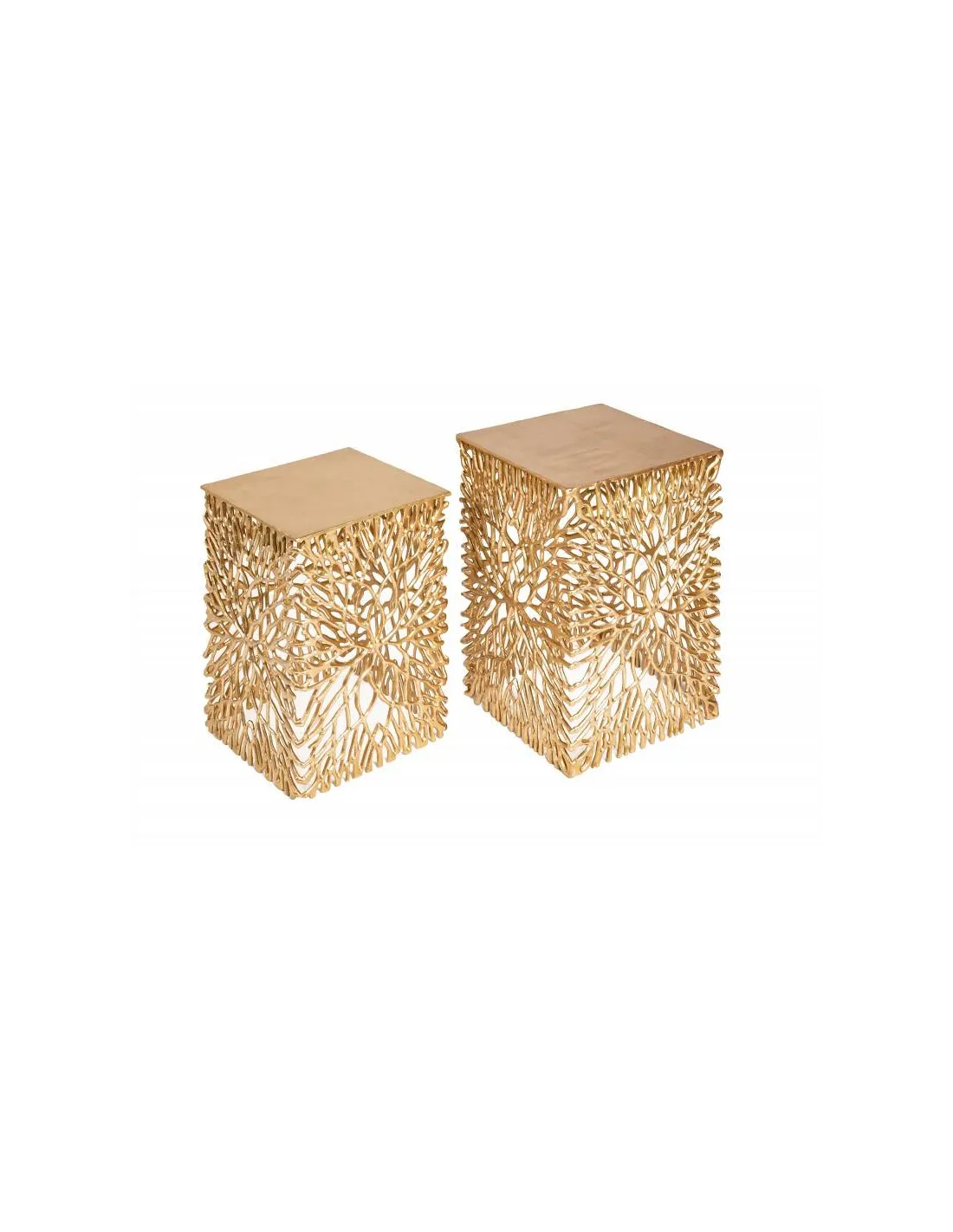 Ensemble de 2 tables d'appoint en forme de feuille en métal doré