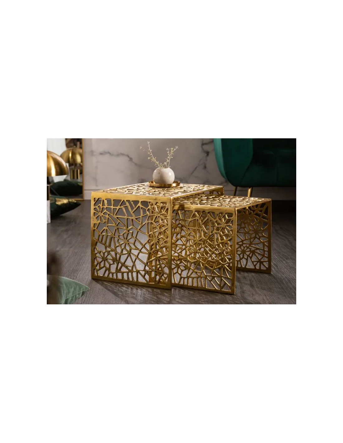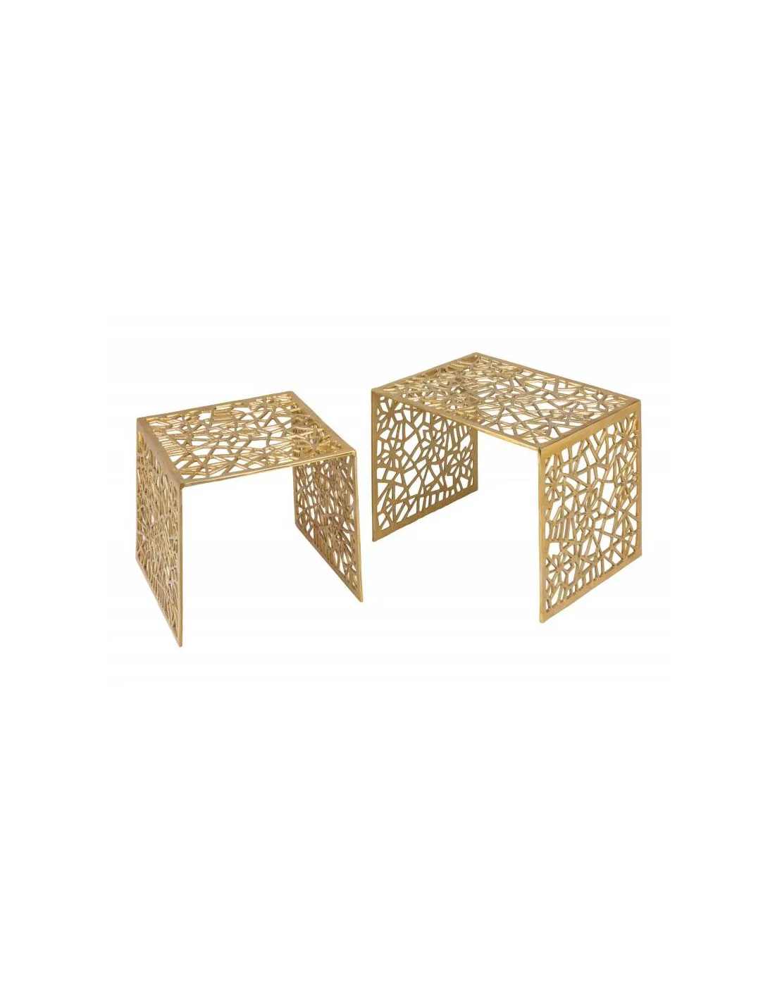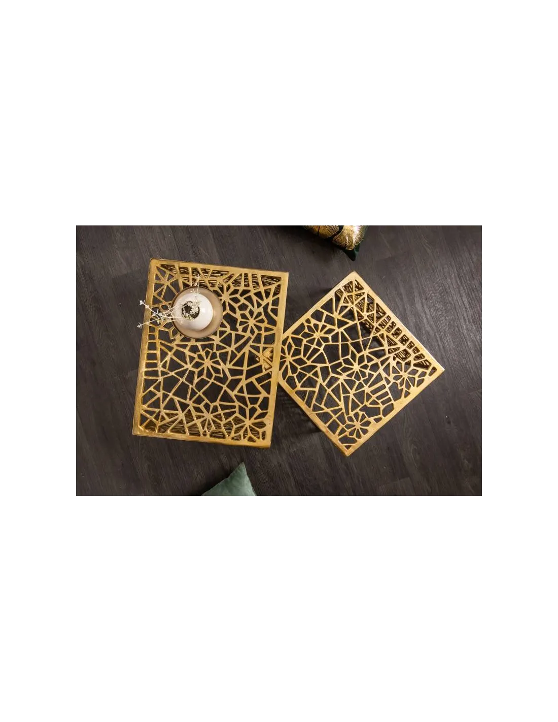 Ensemble de 2 tables basses faites à la main ABSTRACT 49cm dorées