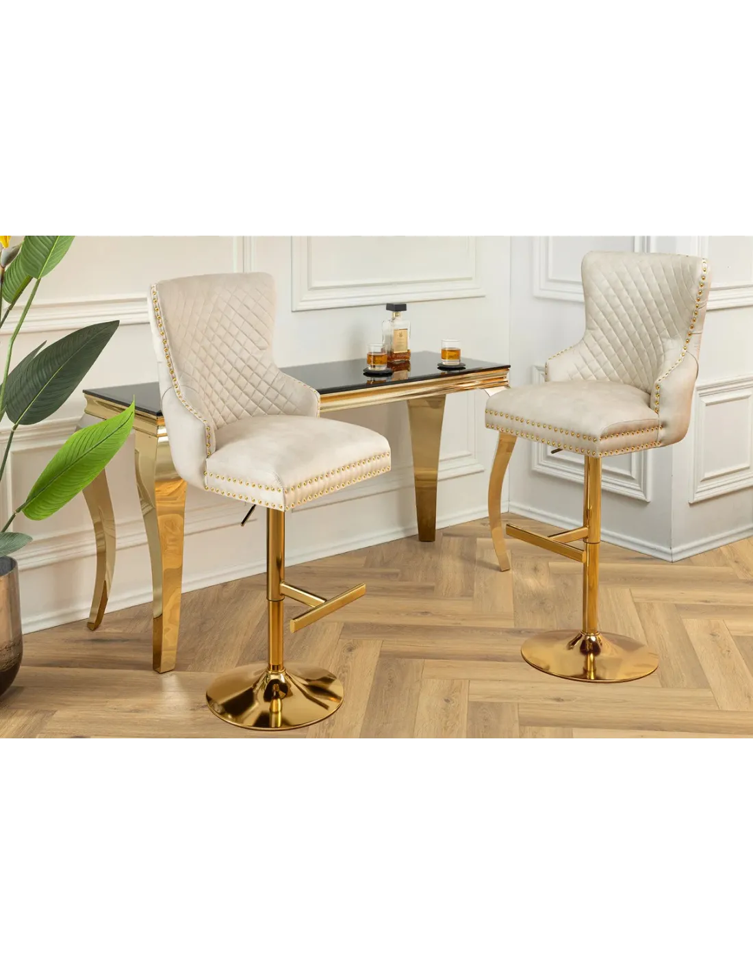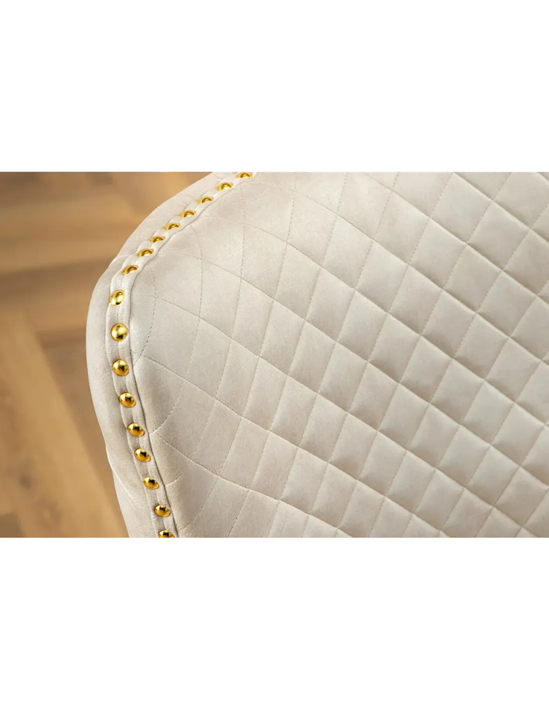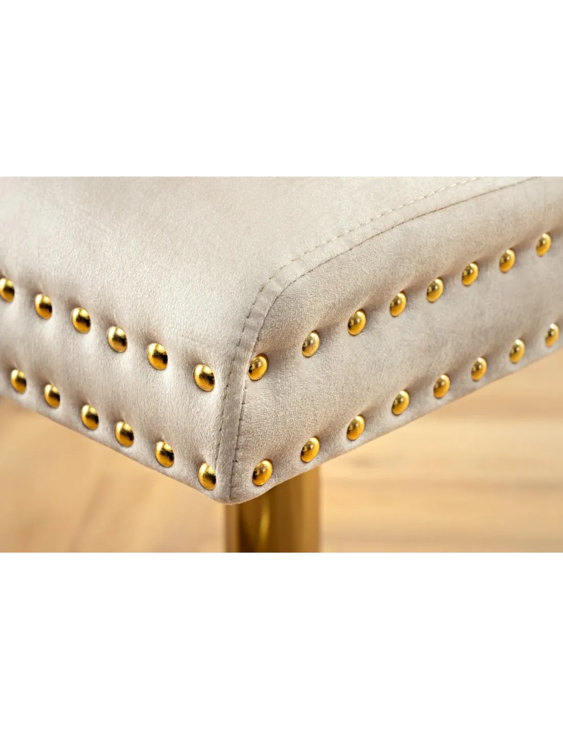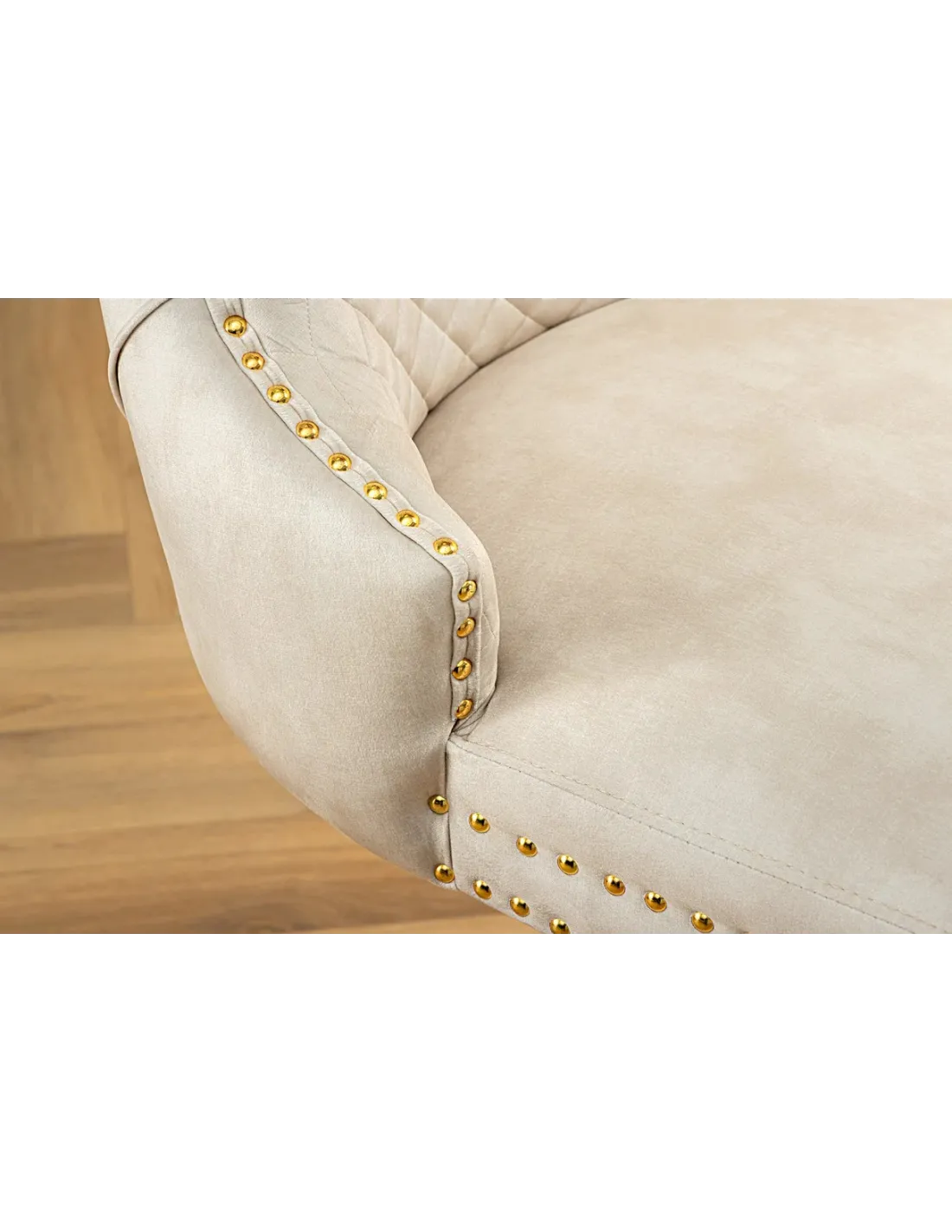 Le contraste entre le velours beige moelleux et les pieds dorés brillants évoque un style royal revisité, parfait pour les amateurs de mobilier de caractère et de design luxueux.