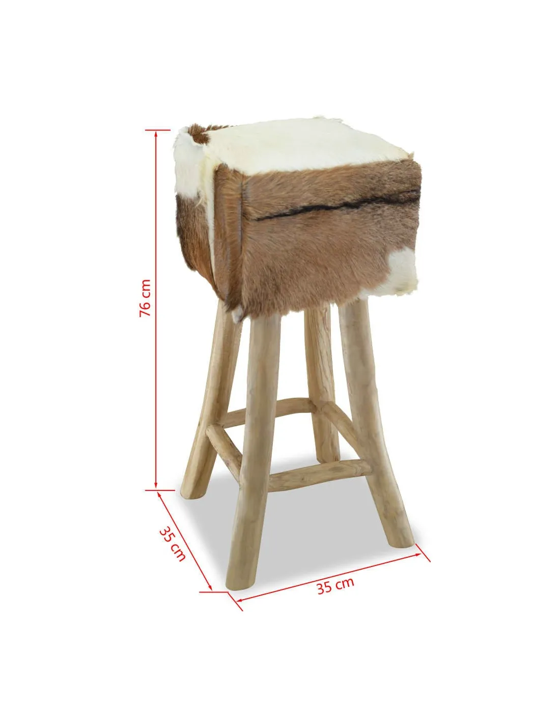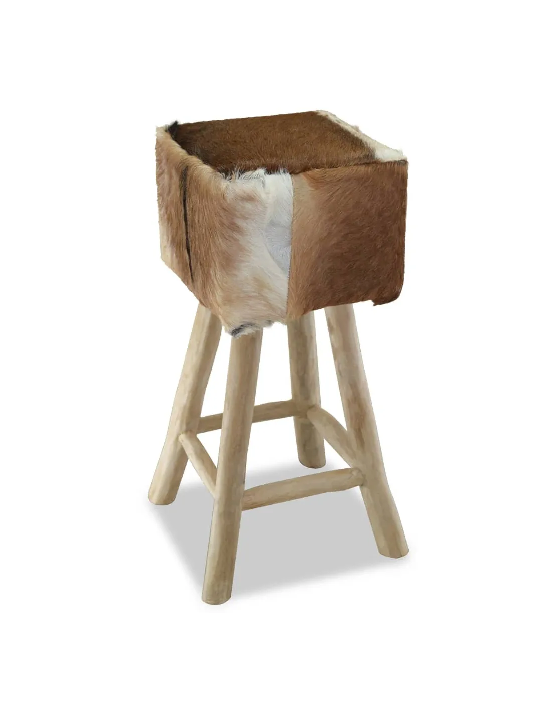 Ce tabouret de bar en cuir de chèvre véritable a un design unique et saisissant et ajoutera une touche de charme rustique aux restaurants ou aux bars, mais aussi à votre salon ou salle à manger à la maison. Le tabouret de bar a un cadre solide en teck, le rendant stable et très durable. Le siège est recouvert de cuir de chèvre 100 % véritable, résistant, durable et flexible, avec le motif de cuir de vache. Le cuir de chèvre poilu est doux au toucher et confortable. Le beau motif en cuir naturel rend chacune de nos chaises de bar unique et légèrement différente de la suivante. Grâce au rembourrage doux dans le siège, vous apprécierez le plus grand confort d'assise. Les pieds dans une couleur de bois naturel s'ajoutent à l'aspect rustique du tabouret. Remarque : Les couleurs et les motifs varient d'une pièce à l'autre. La livraison est aléatoire.
