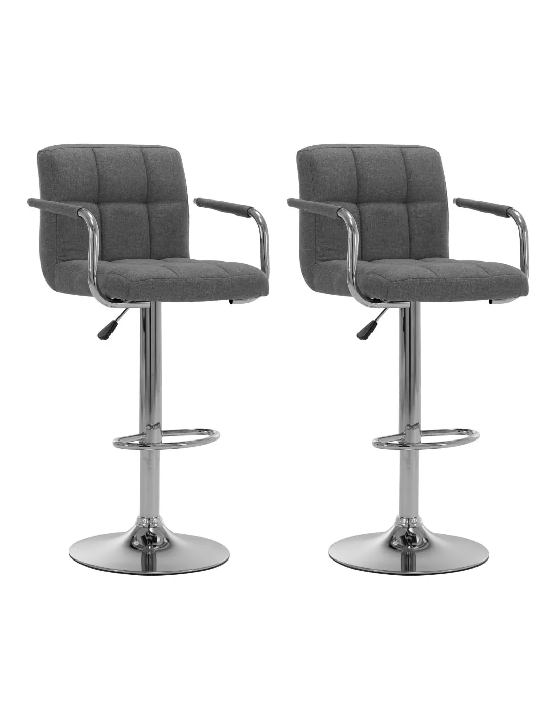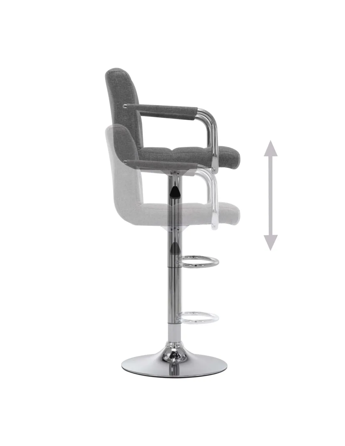 Notre ensemble de chaises de bar en tissu est idéal pour savourer un verre de vin au bar, manger un morceau au comptoir ou pour l'utiliser comme siège supplémentaire lorsque vous avez des invités. Son design épuré et contemporain complétera toute décoration intérieure. L'ensemble de chaises de bar a un cadre en acier chromé, ce qui la rend considérablement stable et durable. Les sièges, dossiers et repose-pieds rembourrés de mousse douce font de la chaise de bar l'endroit idéal pour vous détendre. Grâce au vérin à gaz, la hauteur des chaises de bar est réglable. Elle peut également pivoter sur 360 degrés pour une plus grande flexibilité. Les chaises sont faciles à assembler. La livraison comprend 2 chaises de bar.