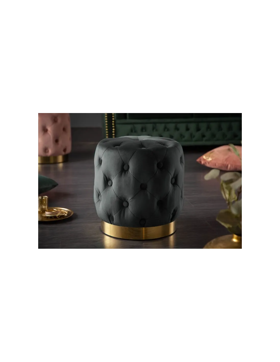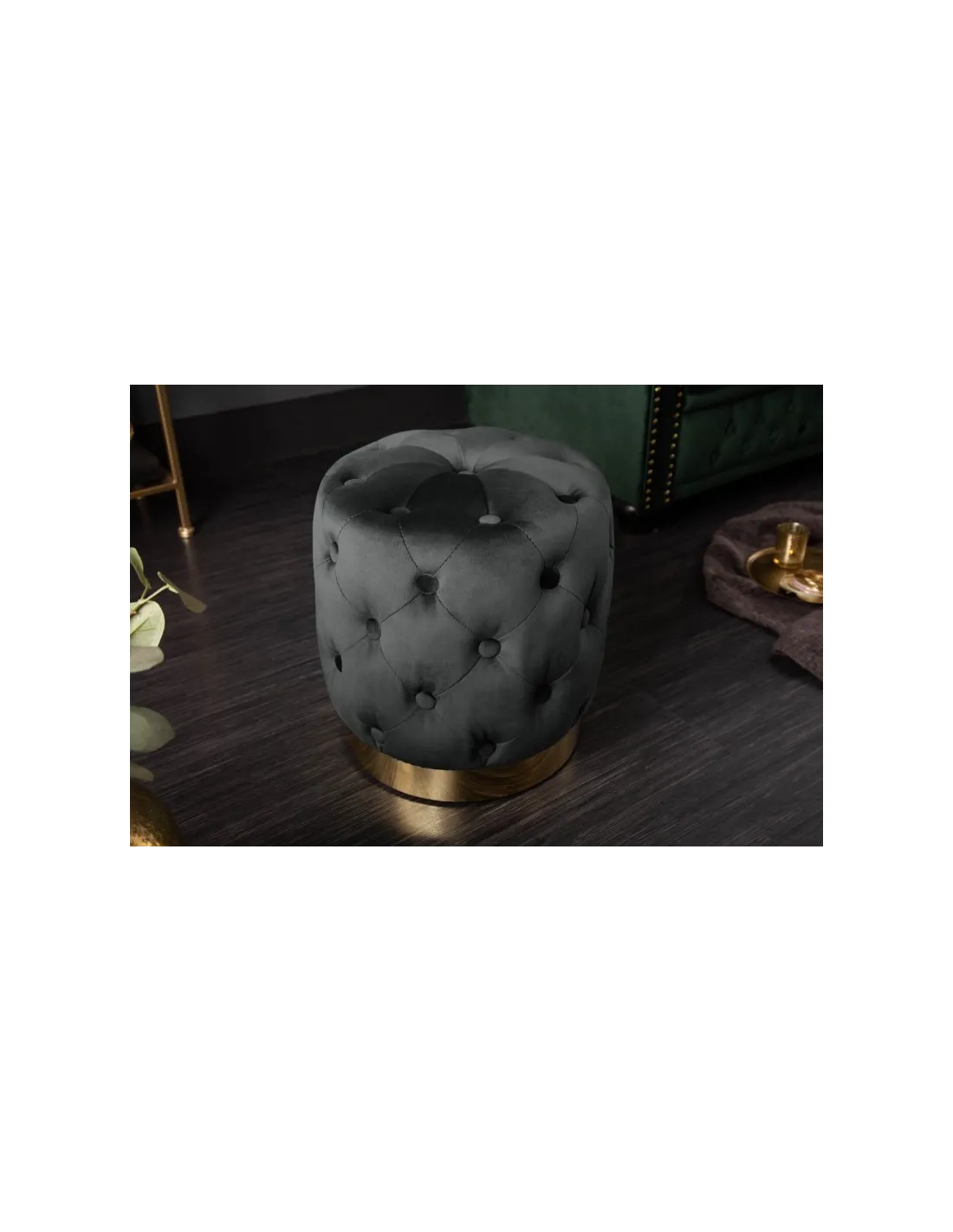 Tabouret Capitonné Chesterfield en Velours Vert et Pied Doré – Style Baroque Moderne