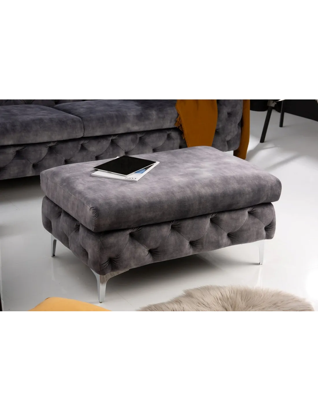 Optez pour le chic et l'élégance de cet agréable tabouret bas coloris gris foncé, son revêtement en velours de haute qualité lui donne un aspect raffiné, très pratique et confortable, son assise rembourrée en polyester de premier choix vous garantit un confort total ! De plus sa structure en bois massif et son piétement en métal assurent une solidité parfaite ! C'est un joli meuble à un prix extraordinaire !