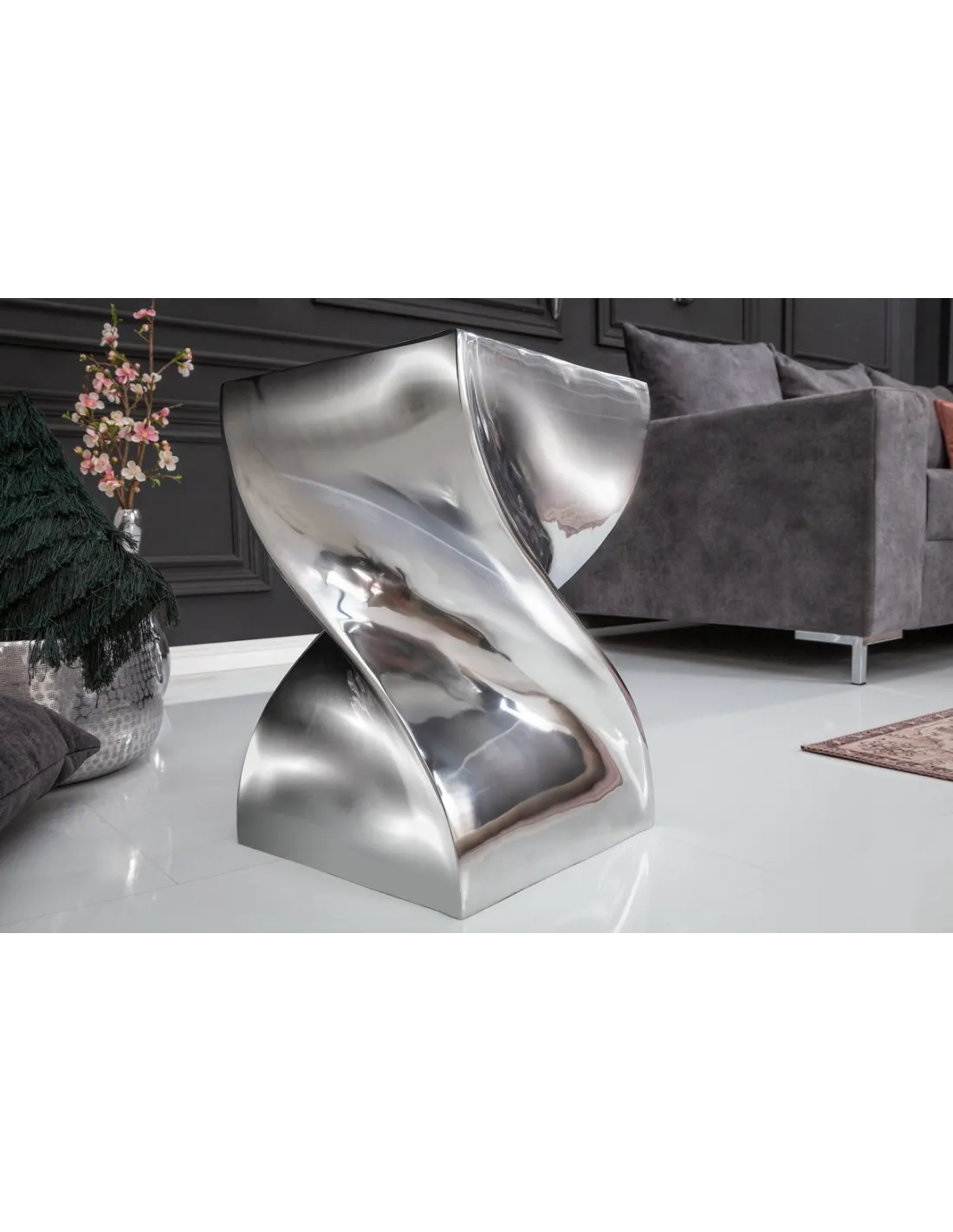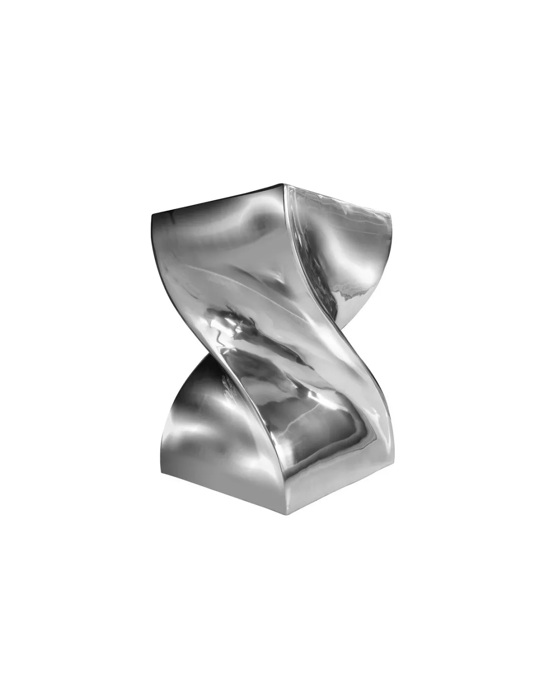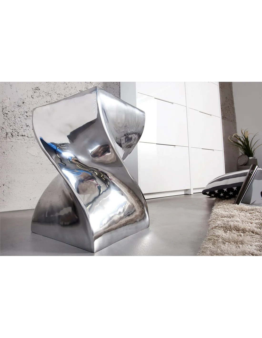 Excellent tabouret moderne coloris argenté ! Sa structure est fabriquée en aluminium de haute qualité avec une finition exemplaire et peut être utilisé comme table d’appoint. Il est très pratique et élégant avec une design torsion unique et des jolies courbes innovantes et un coloris argenté pur et charmant ! Elle ornera parfaitement votre intérieur !