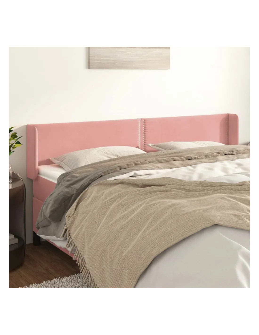 Tête de lit avec oreilles Rose 163x16x78/88 cm Velours