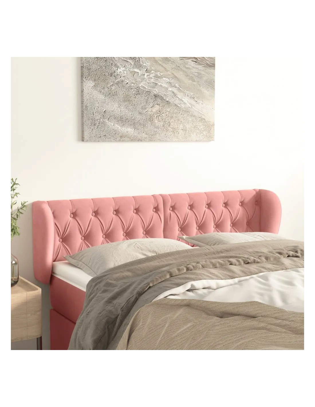 Tête de lit avec oreilles Rose 147x23x78/88 cm Velours