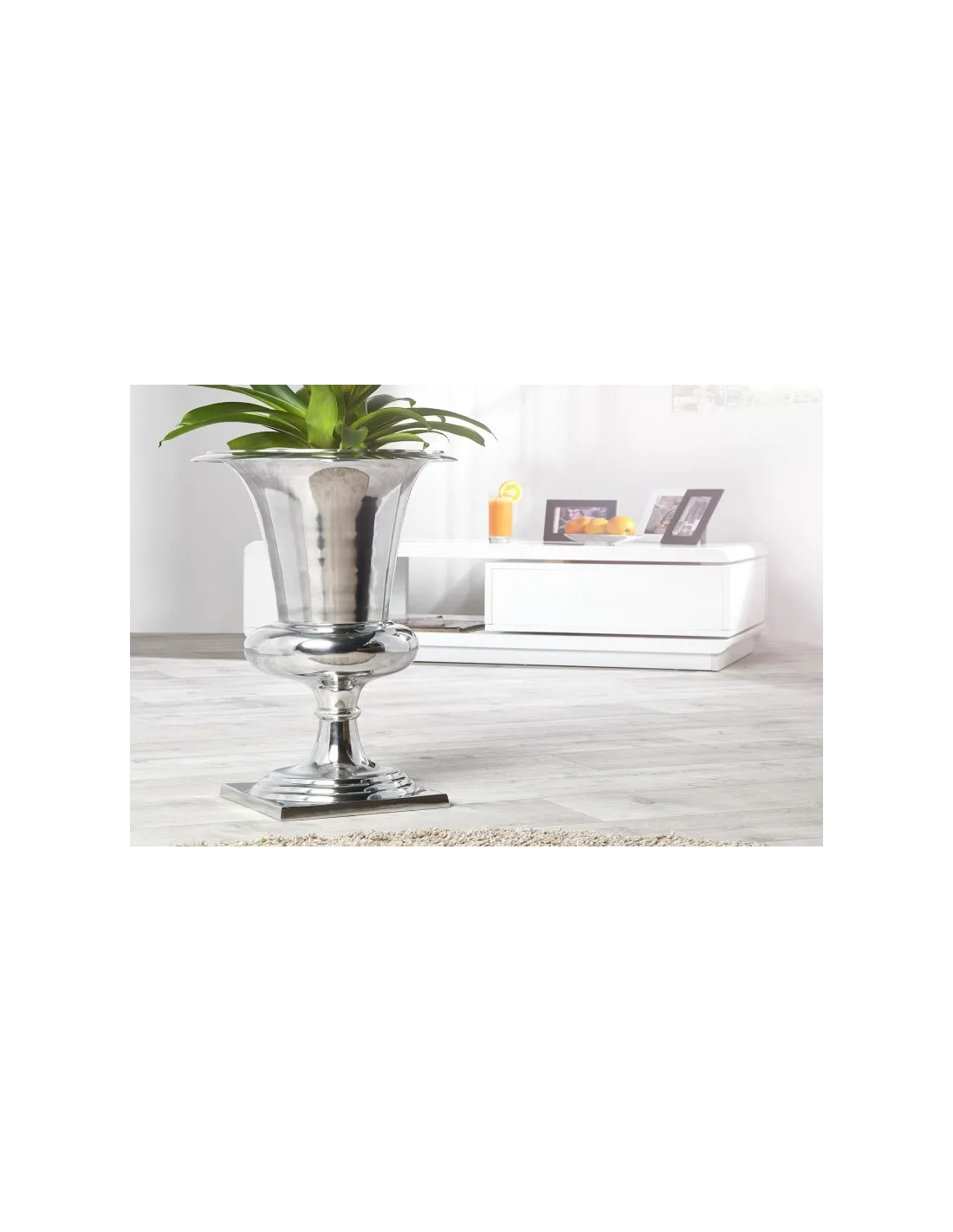 Vase décoratif coloris argenté en métal-aluminium