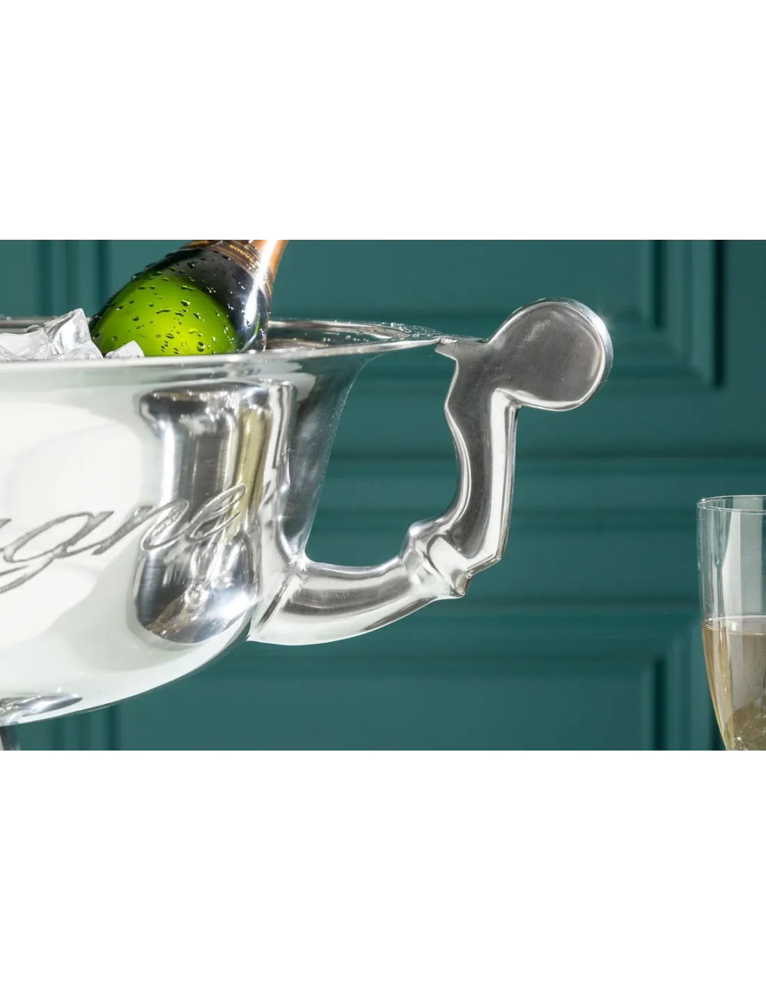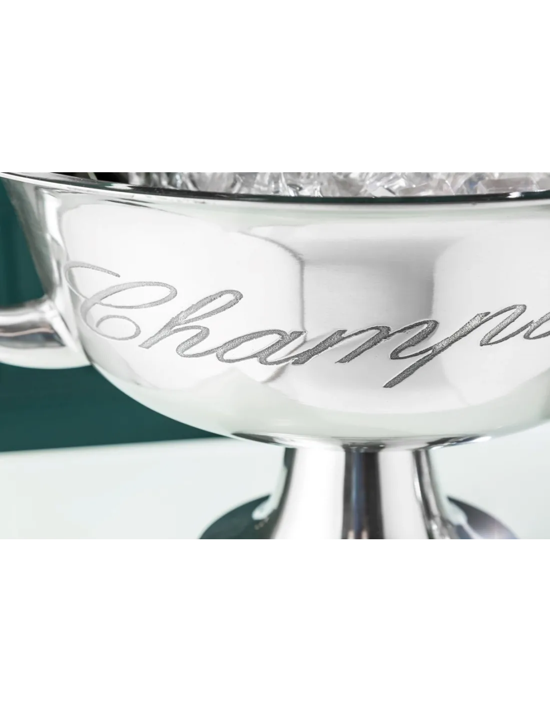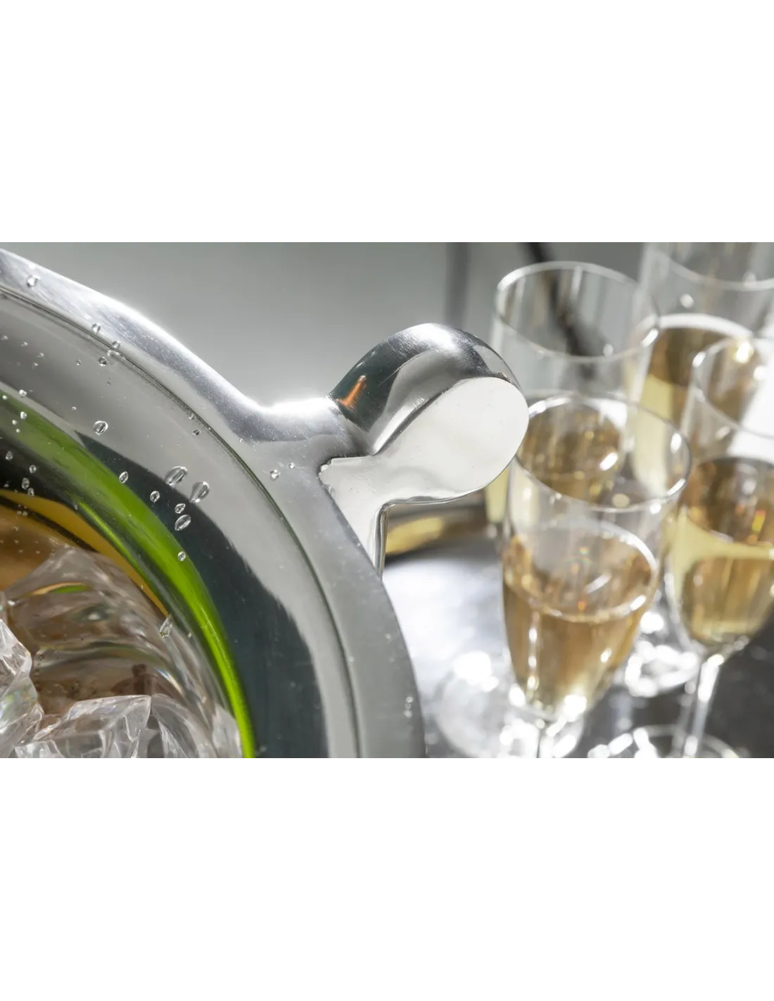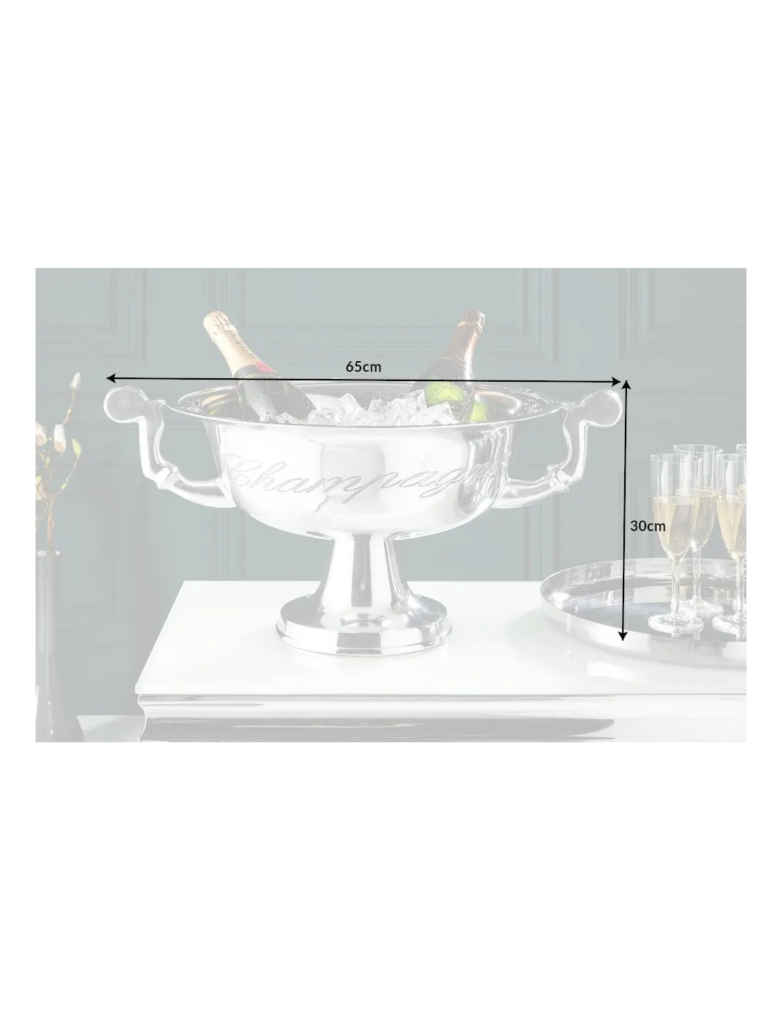 Sublime vasque à champagne, sa structure est faite en aluminium de couleur argentée. Sera l'idéale pour stocker et présenter luxueusement vos bouteilles avec des glaçons, afin de les conserver fraiches et en bonne température, à part son utilité extraordinaire cette vasque à champagne apportera une décoration esthétique à votre séjour.